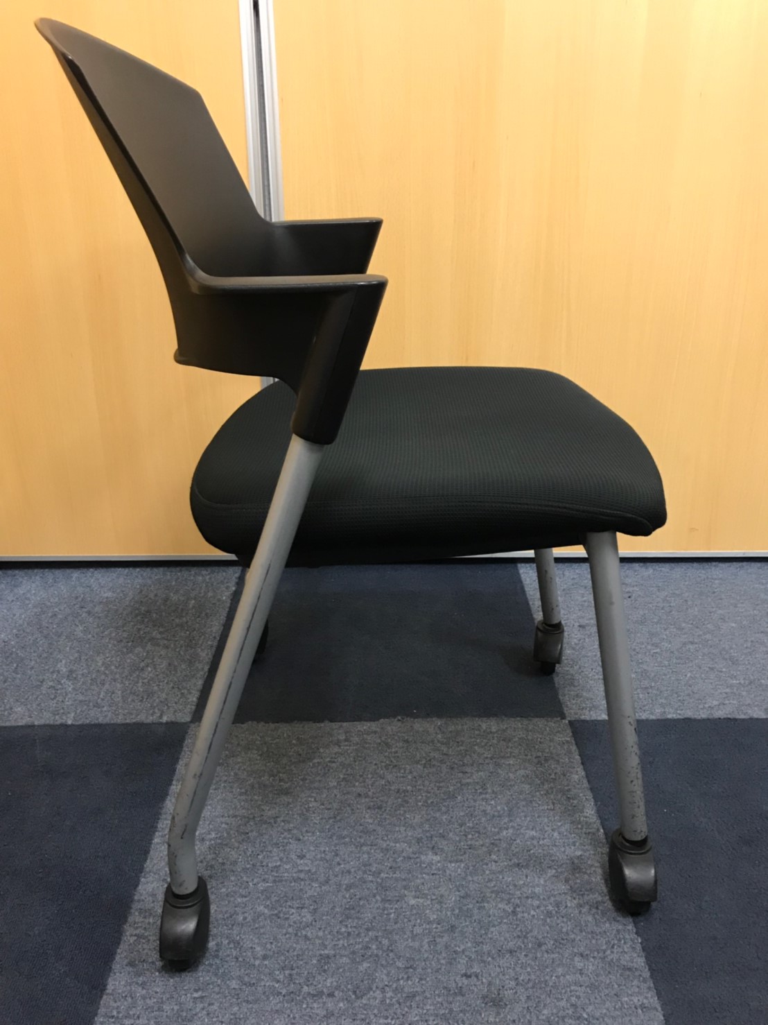 【シンプルスマートなスタッキングチェア!分厚いクッションで長時間でも快適な座り心地!】■スタッキングチェア 肘付ミーティングチェア ■固定肘 ■キャスター付 ■ブラック ■背面樹脂/コクヨ(KOKUYO/プロッティ