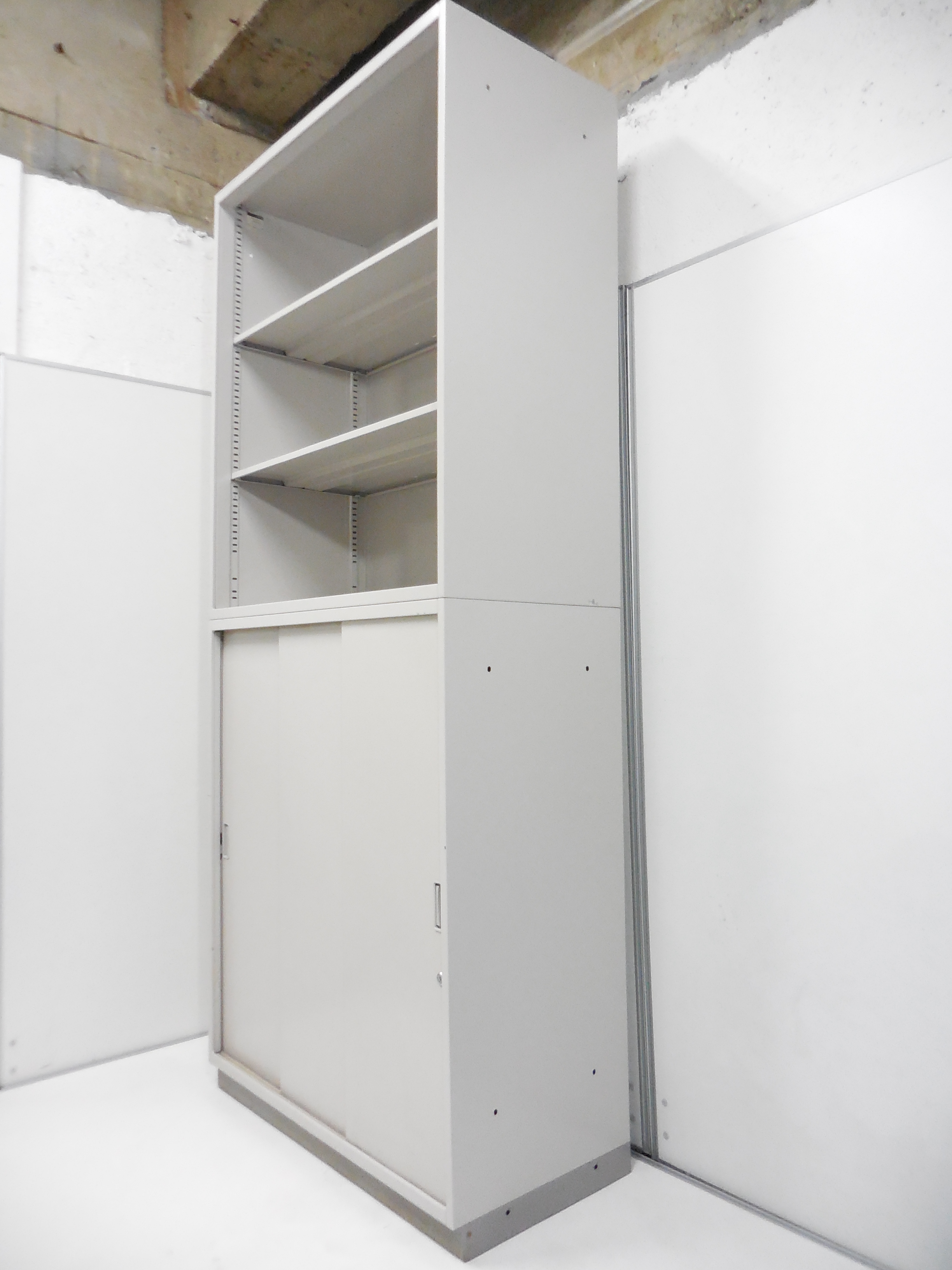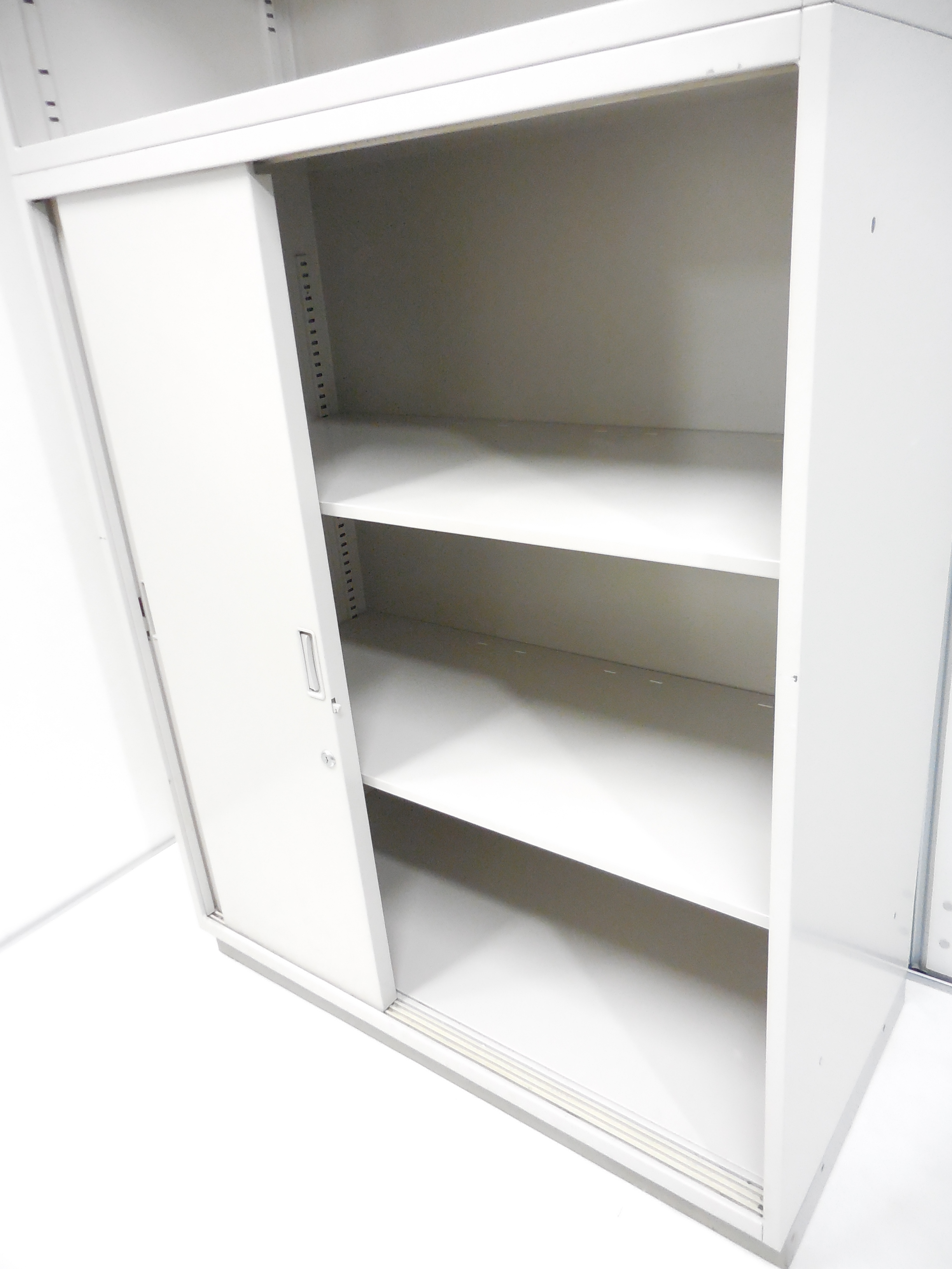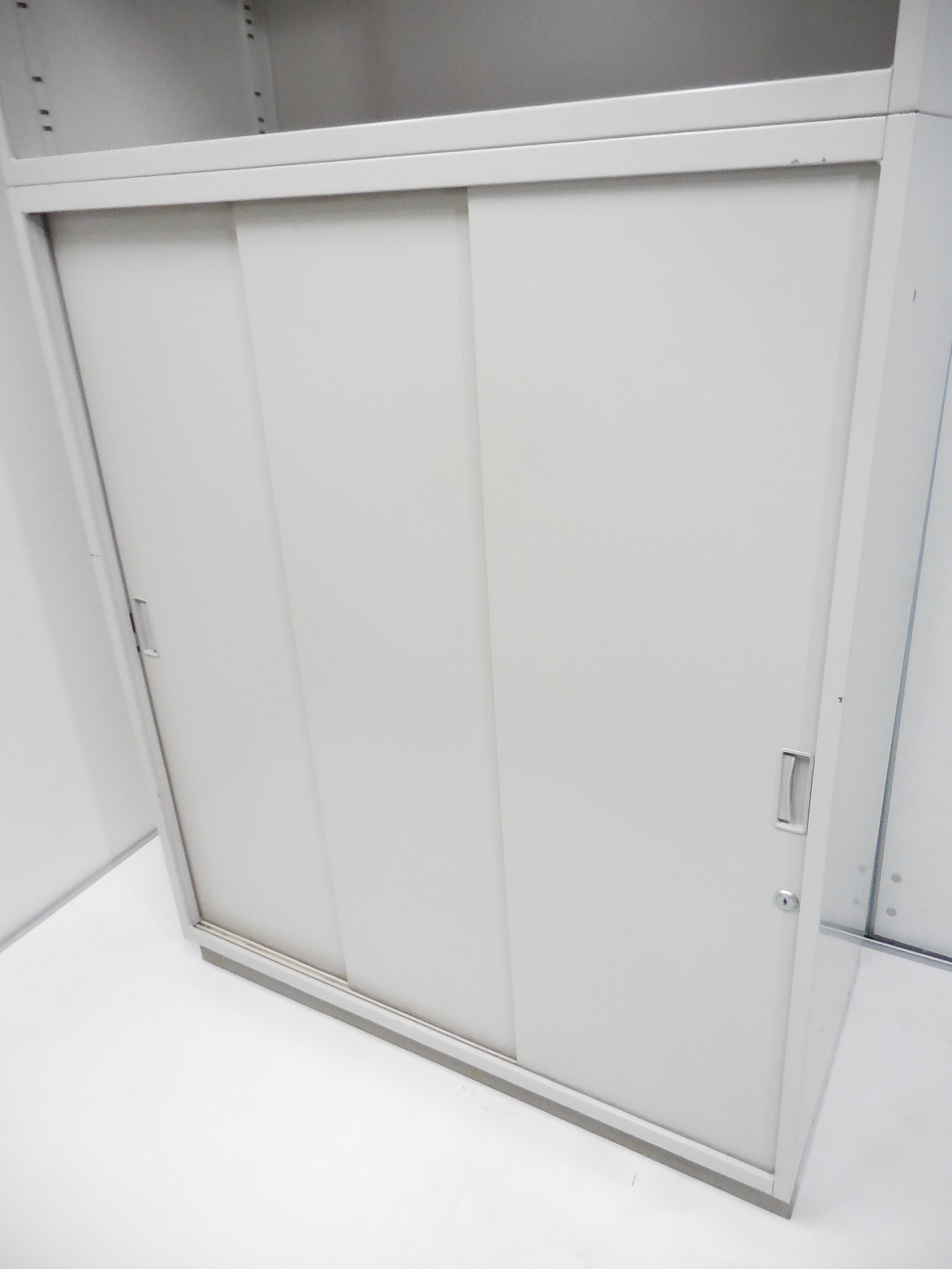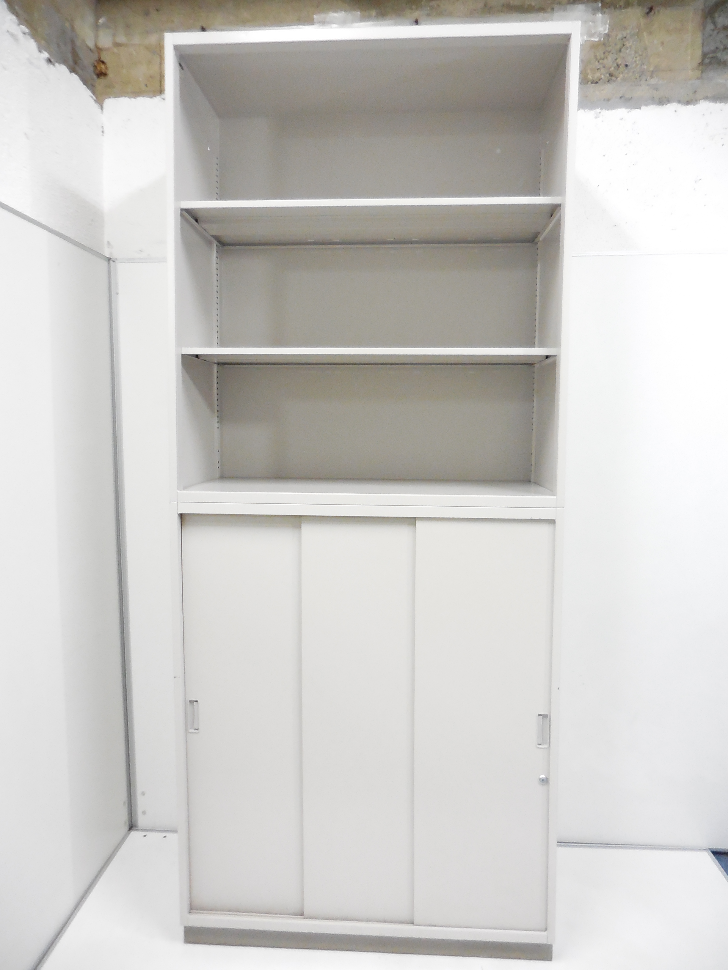 【すぐ取り出したいものはオープンへ保管用などは両開きへ!使い分け可能です!】■イトーキ製 シンラインシリーズ 上下戸書庫セット(上:オープン 下:両開き) ニューグレー 《オフィスバスターズ福岡博多店は、福岡を拠点として、日本全国へ中古オフィス用品・オフィス家具を提供しております》