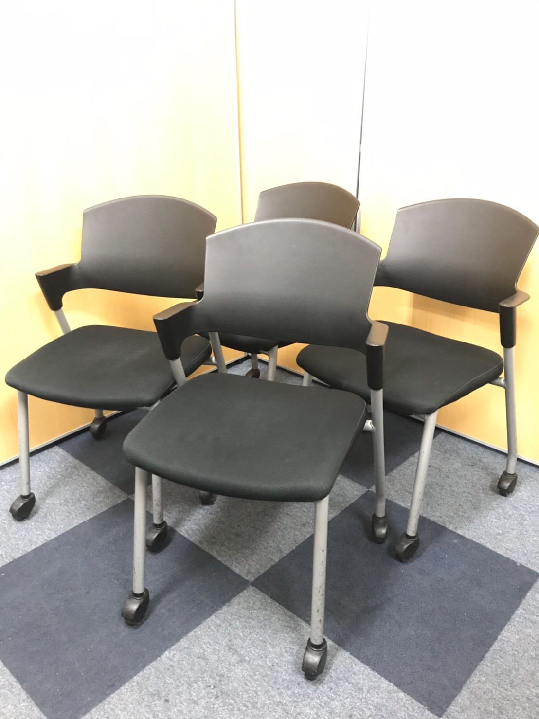 【セット商品(チェア×4脚)】【シンプルスマートなスタッキングチェア!分厚いクッションで長時間でも快適な座り心地!】/オススメ(おすすめ) /人気商品【弊社使用欄:A01037619】■スタッキングチェア 肘付ミーティングチェア ■固定肘 ■キャスター付 ■ブラック ■背面樹脂/コクヨ(KOKUYO/プロッティ