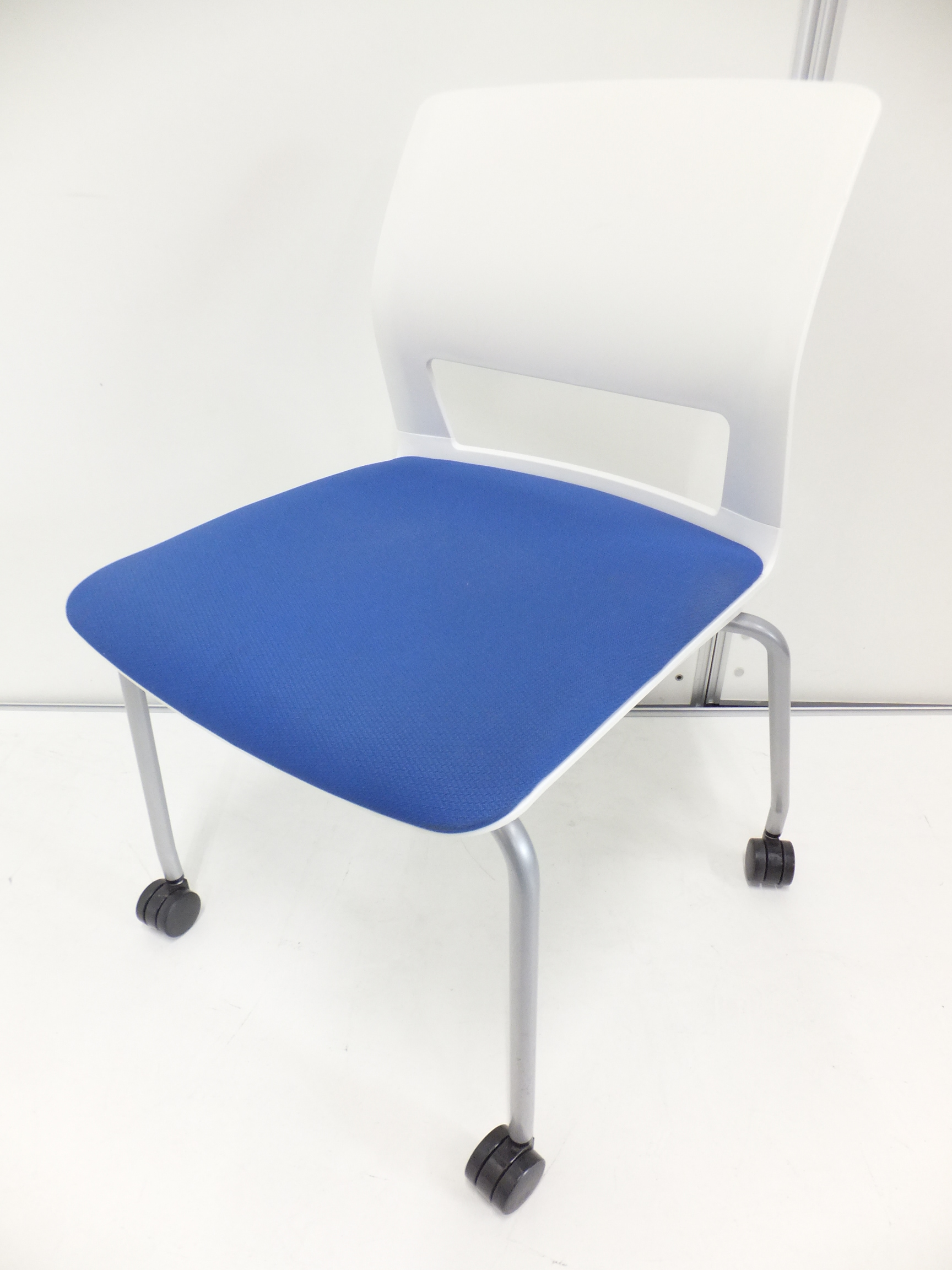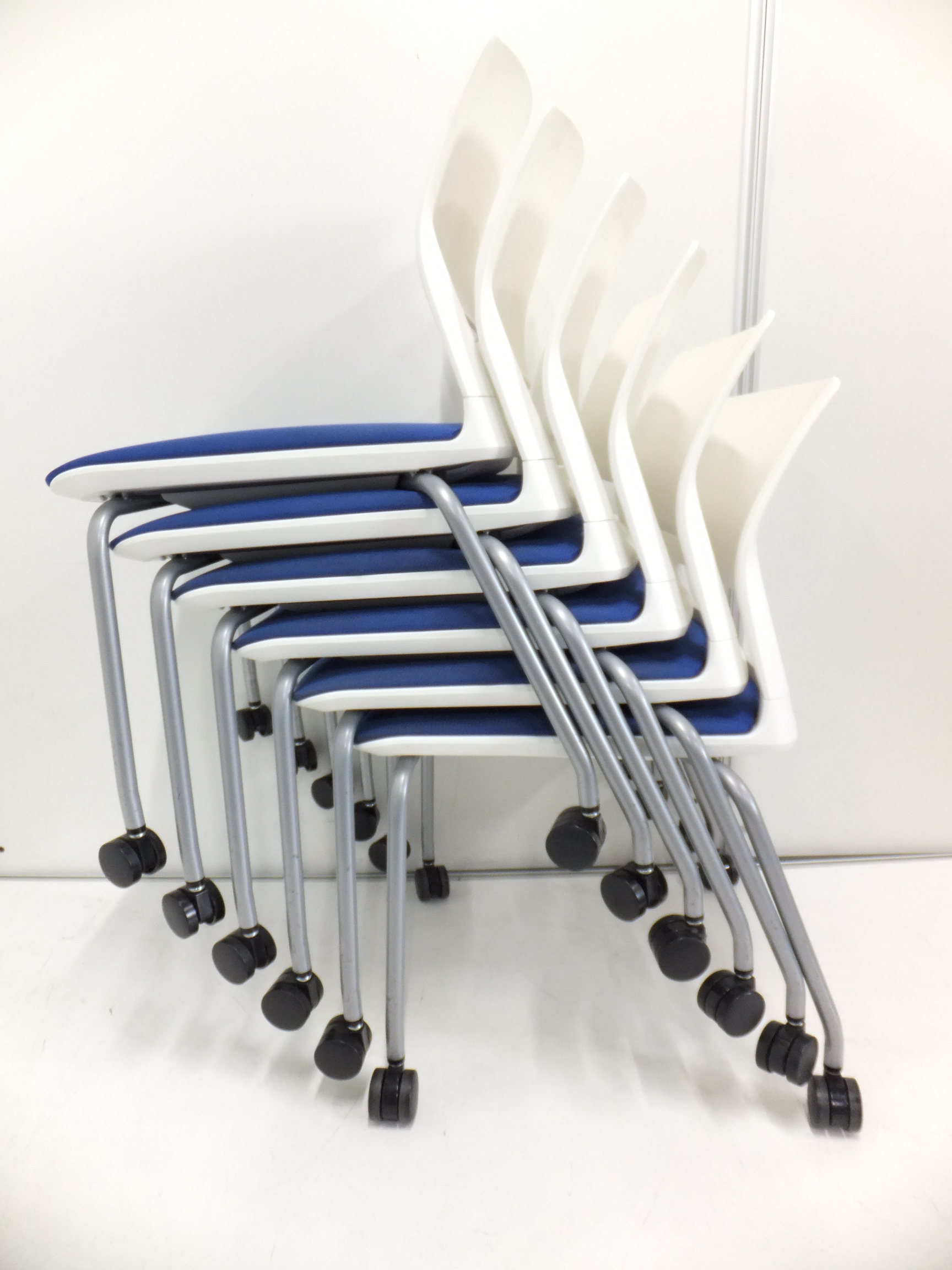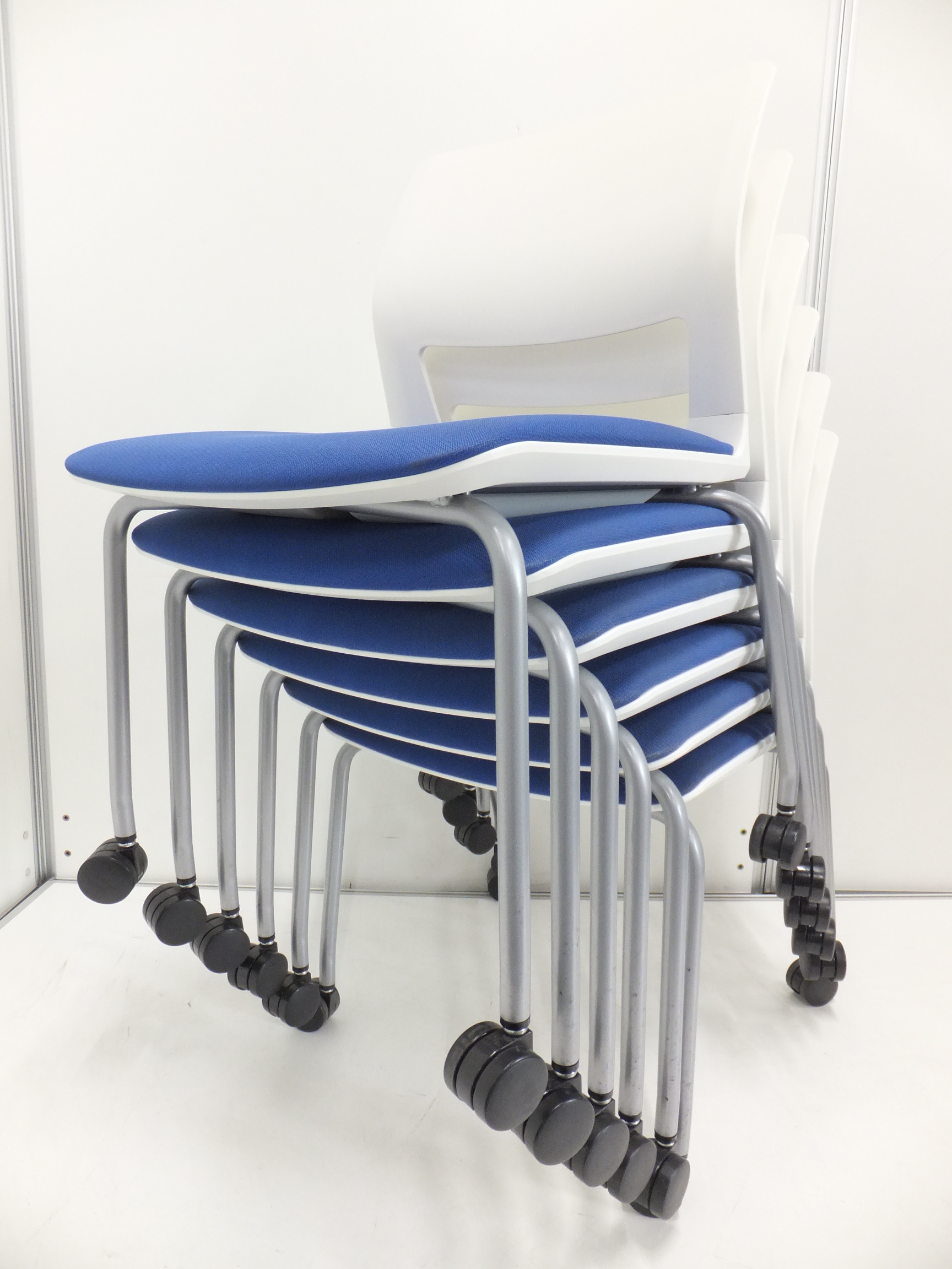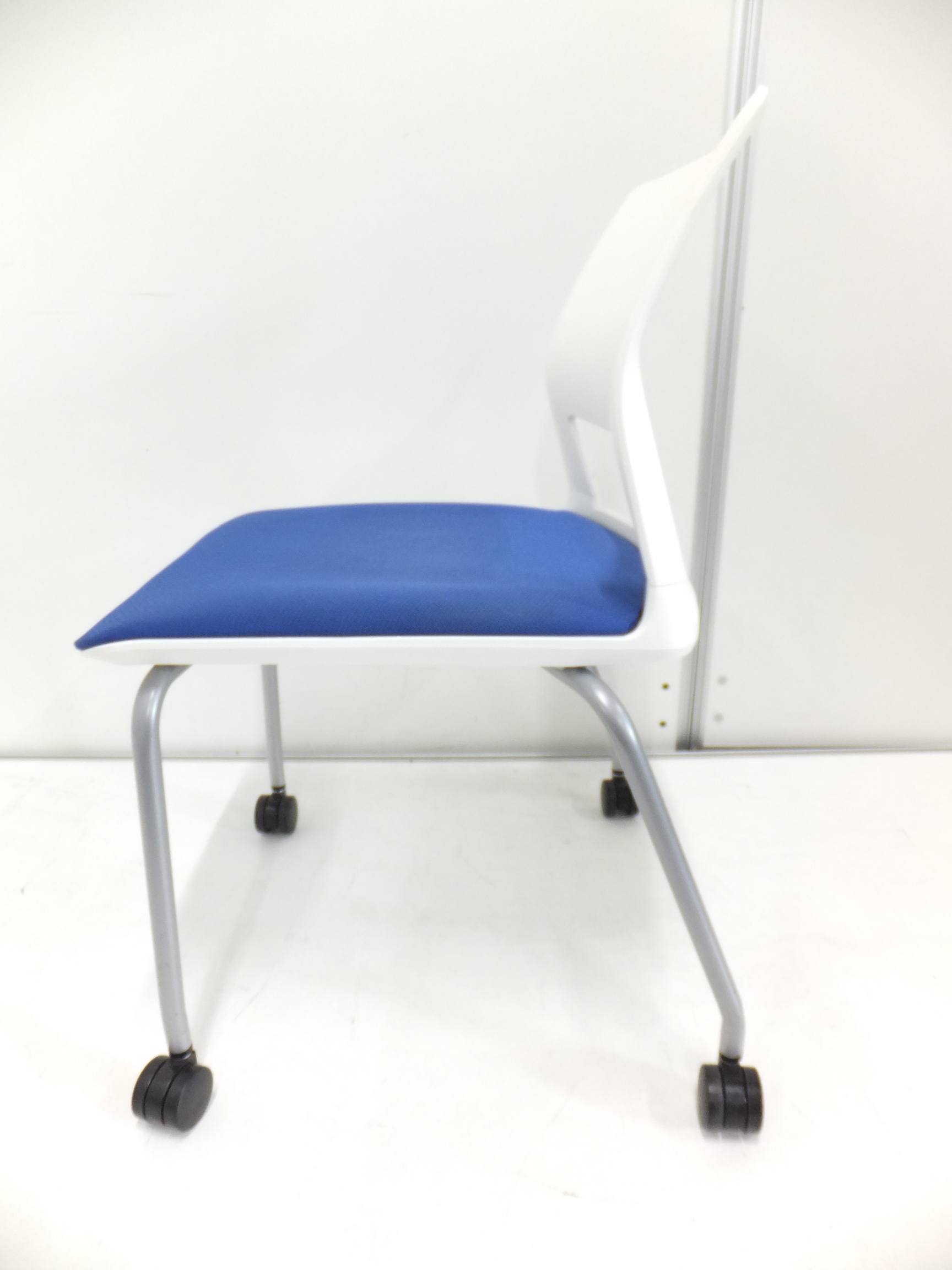 【重ねて収納可能!スペースの削減にお勧めなスタッキングチェア!】■コクヨ(KOKUYO)製 CK-160 スタッキングチェア ミーテイングチェア ■背カバーあり ■ブルー×ホワイトシェル