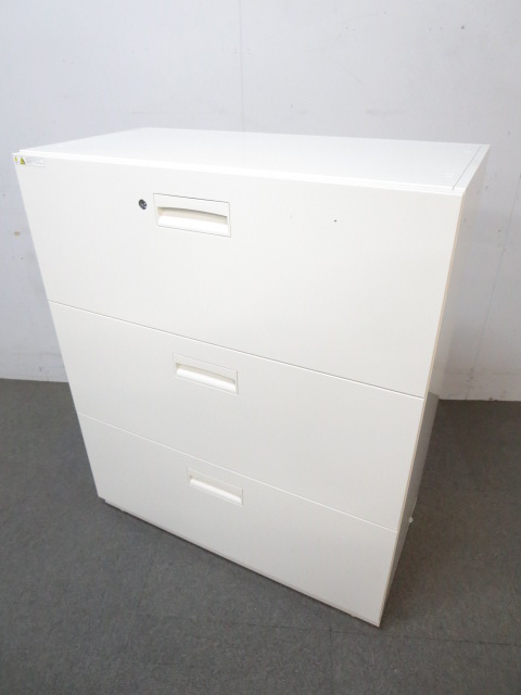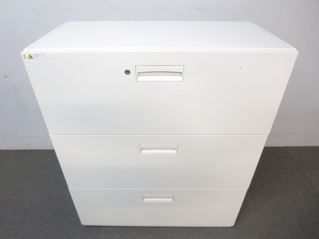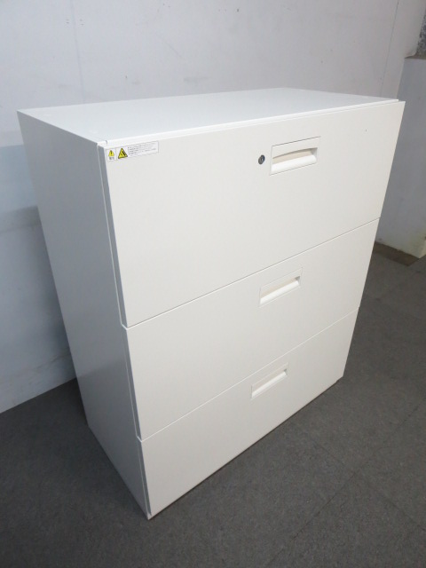 【ファイル書類をスッキリ整理!】■3段ラテラル書庫 ホワイト ■ライオン(LION)製 引き出し型キャビネット- 川崎店