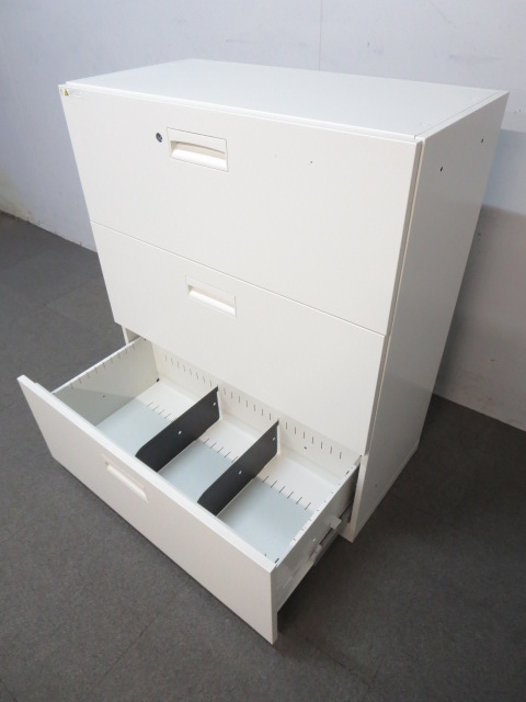 引出し型でファイル書類の収納にオススメの3段ラテラル書庫です。