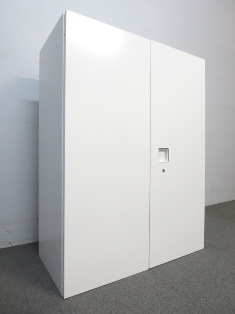 定番サイズ オカムラ/レクトラインシリーズ カラー:ネオホワイト 両開き書庫 鍵付き シリンダー錠 天板無し