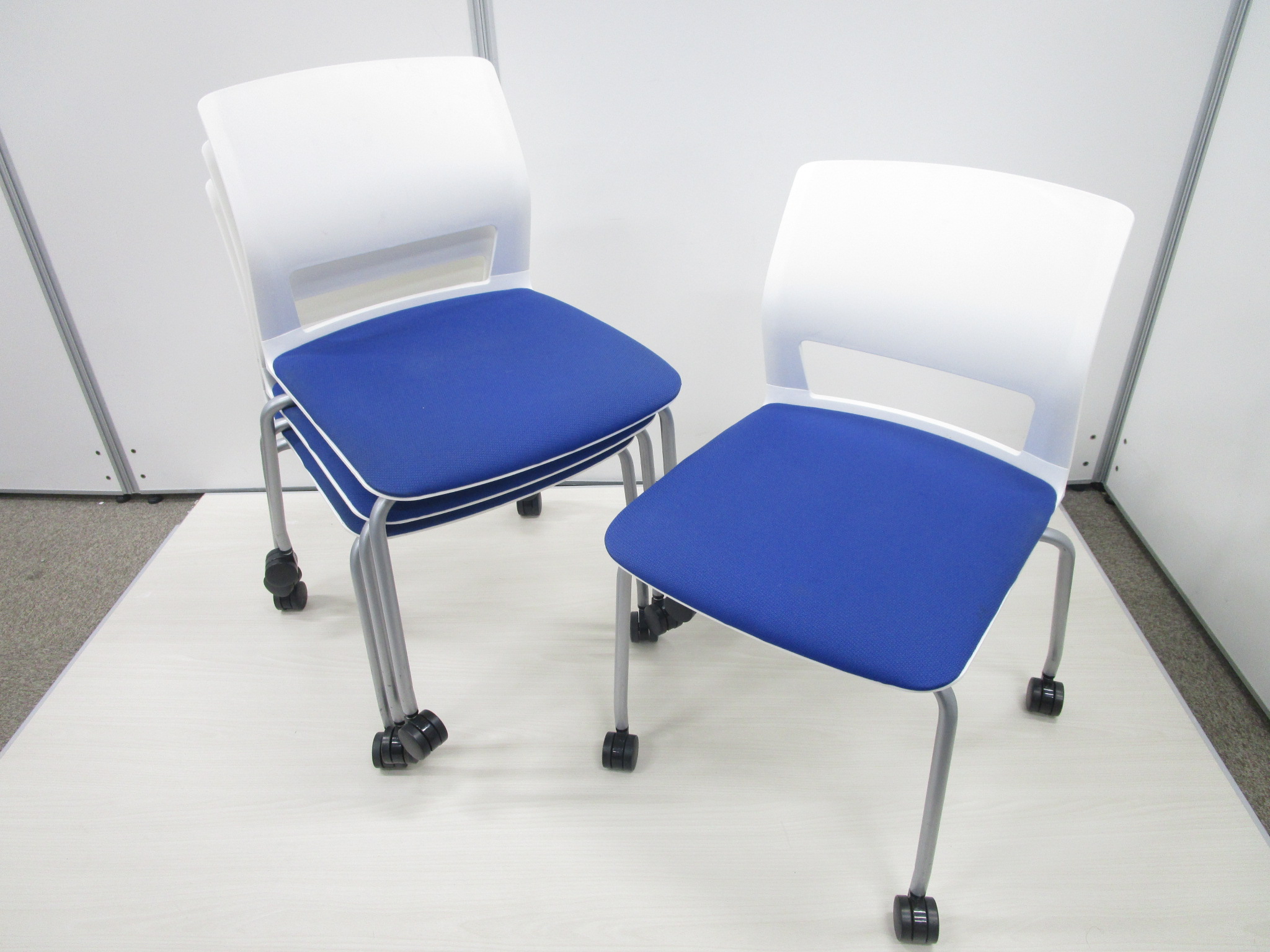 【重ねて収納可能!スペースの削減にお勧めなスタッキングチェア!】■コクヨ(KOKUYO)製 CK-160 スタッキングチェア ミーテイングチェア ■背カバーあり ■ブルー×ホワイトシェル