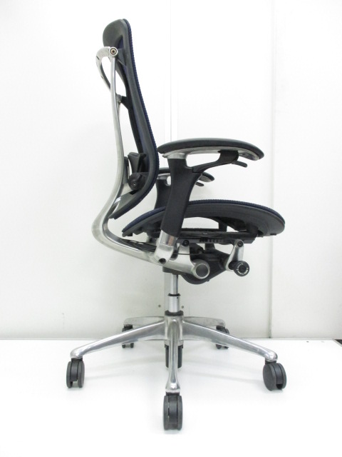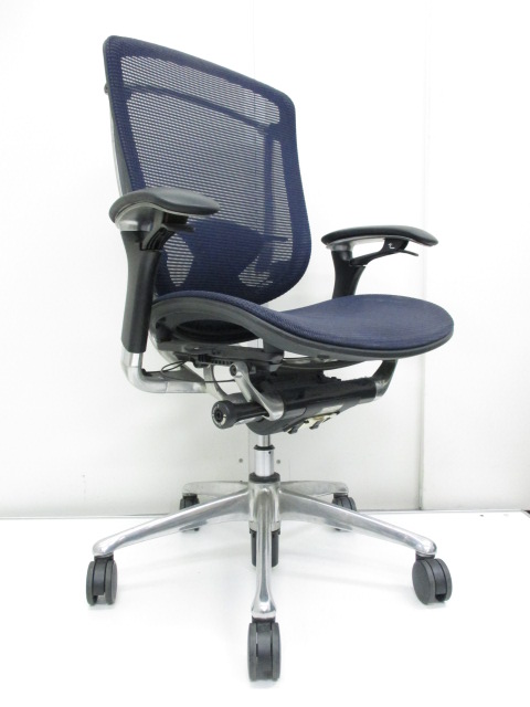【オカムラ製の最高級チェアが残り1脚限りです!!】オフィスバスターズ 東大阪店 オカムラ製 コンテッサ シリーズ ダークブルー アジャストアーム※可動肘 背/座面メッシュ ランバー 世界で認められた革新的タスクチェア!人間工学に基づいた快適な座り心地を実現! 肘付きハイバックチェア!! 中古 外部倉庫品