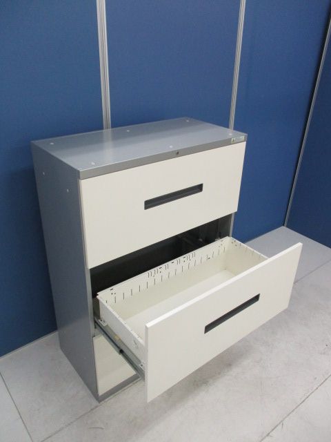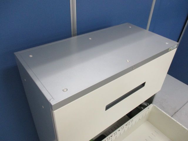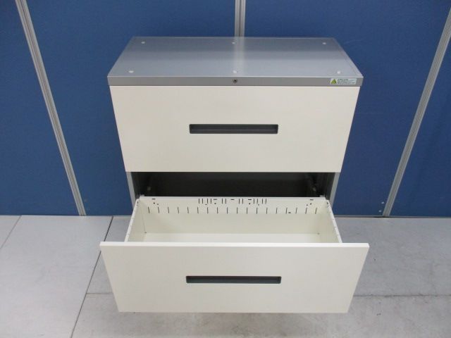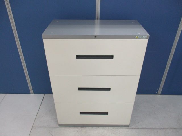 オカムラ製 幅800×奥行400×高さ1100mm。カラーはホワイトです上からひと目で見渡せて検索に便利な3段ラテラル書庫。- 足立・葛飾店