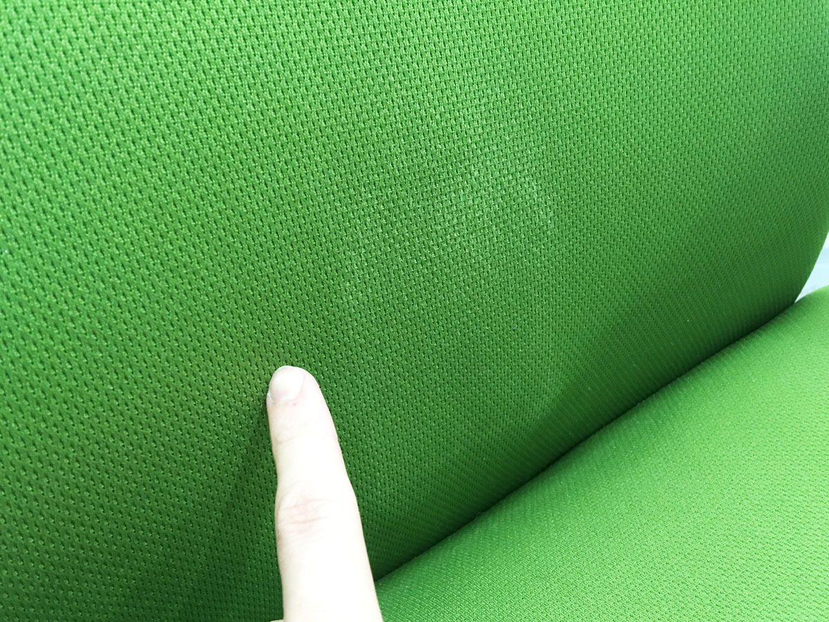 座面・背もたれに摩耗によるファブリックの使用感が感じられます。(写真6、9、10枚目参照)