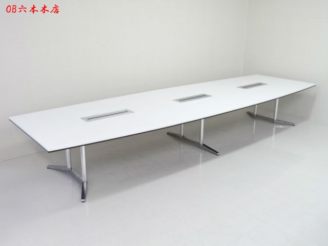 【ワンランク上のカンファレンス空間を演出!】■オカムラ ラティオシリーズ 会議用テーブル W3200mm(8~12名用) 配線ボックス付 ホワイト 【Okamura RATIOⅡ】