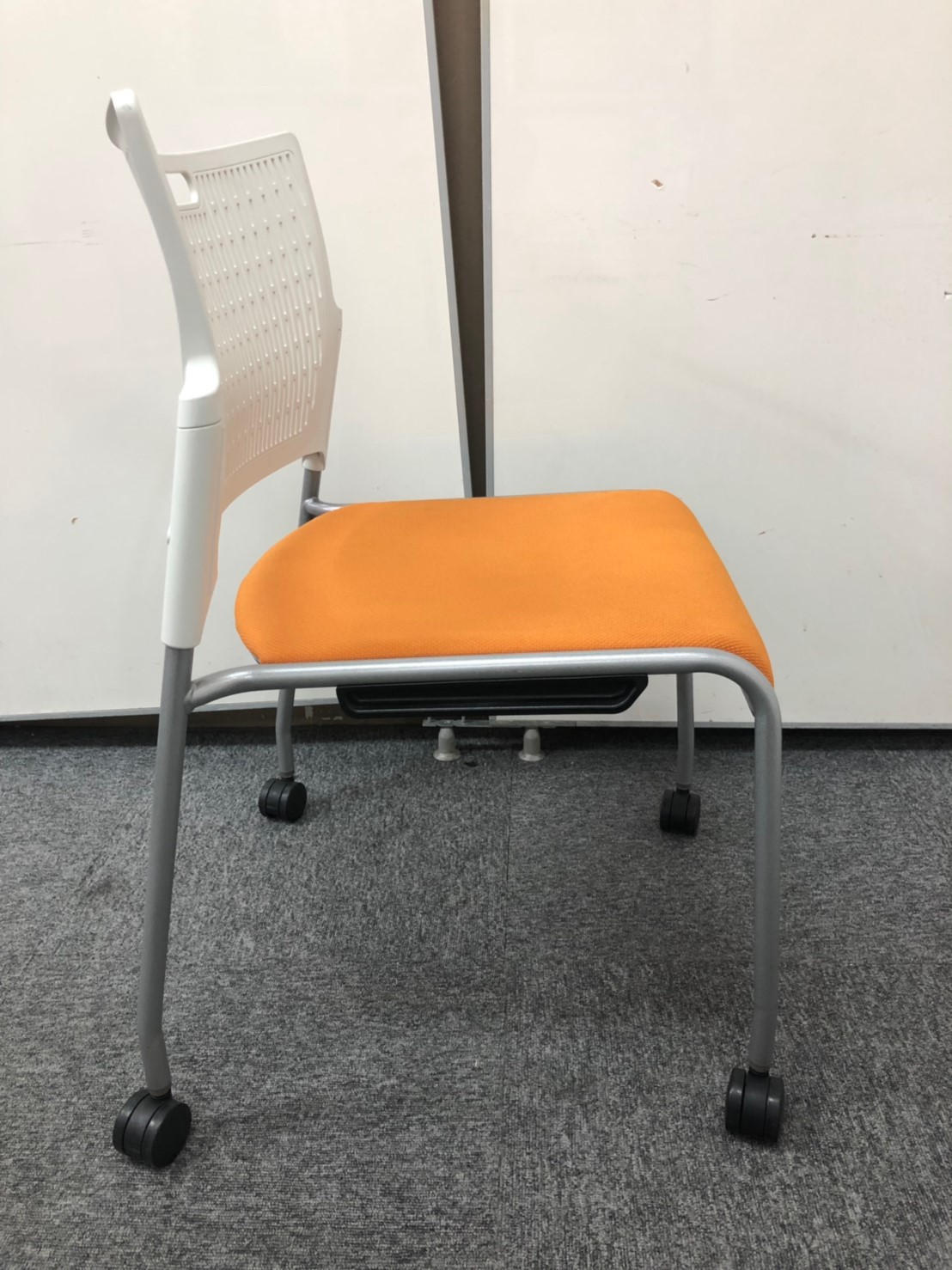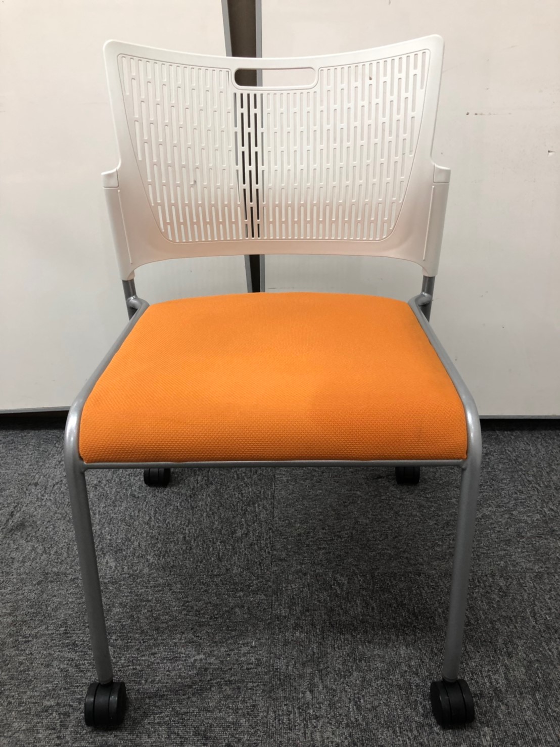 【2脚のため特別価格】キャスター付き!スタッキングチェア!オレンジ×ホワイト!- 京都東寺店