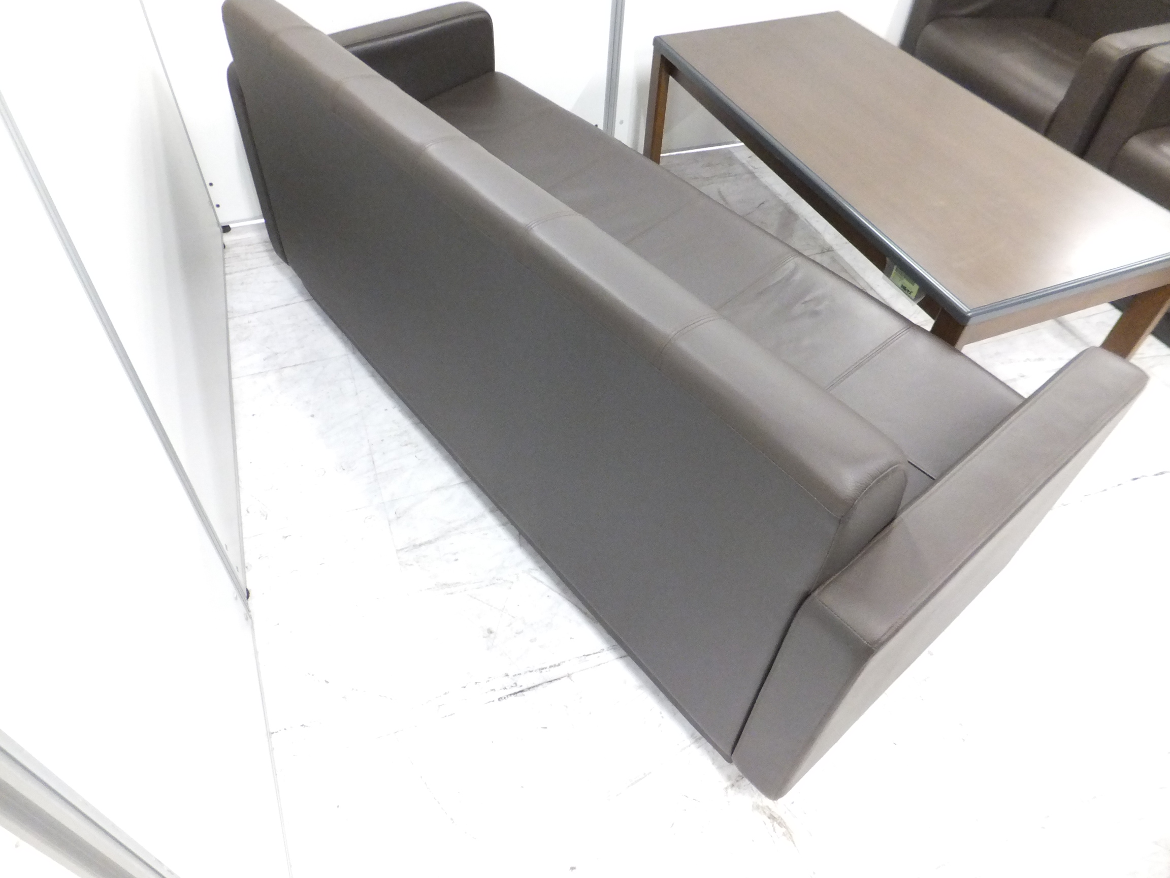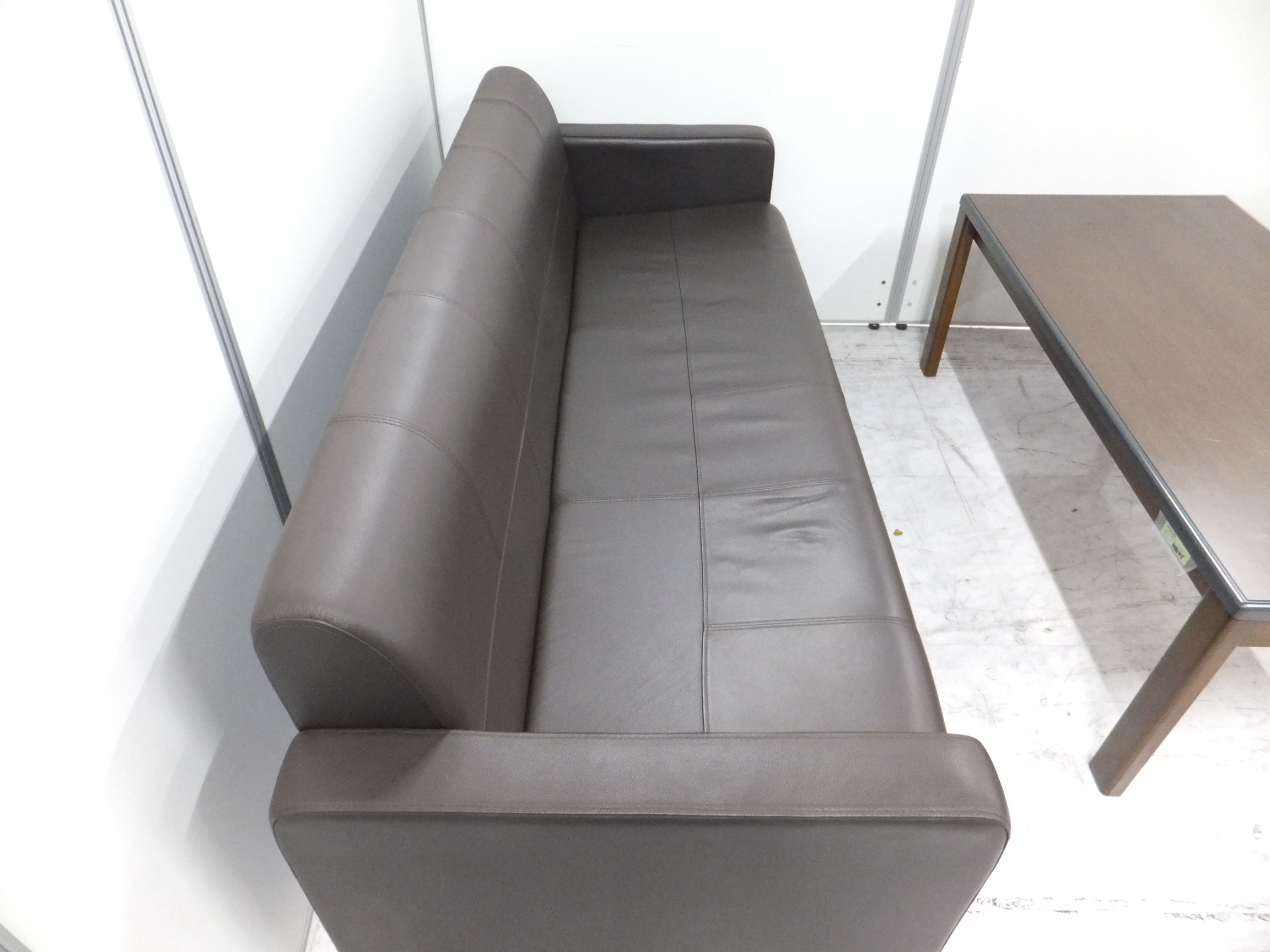 - あり黄ばみ・変色が広い範囲にうっすらある、または濃い黄ばみ・変色が一部ある。(例:三人用ソファ、二人用ソファ、一人用ソファの場合、背もたれ、肘かけ、座面等、 センターテーブルの場合、天板、脚にある。)