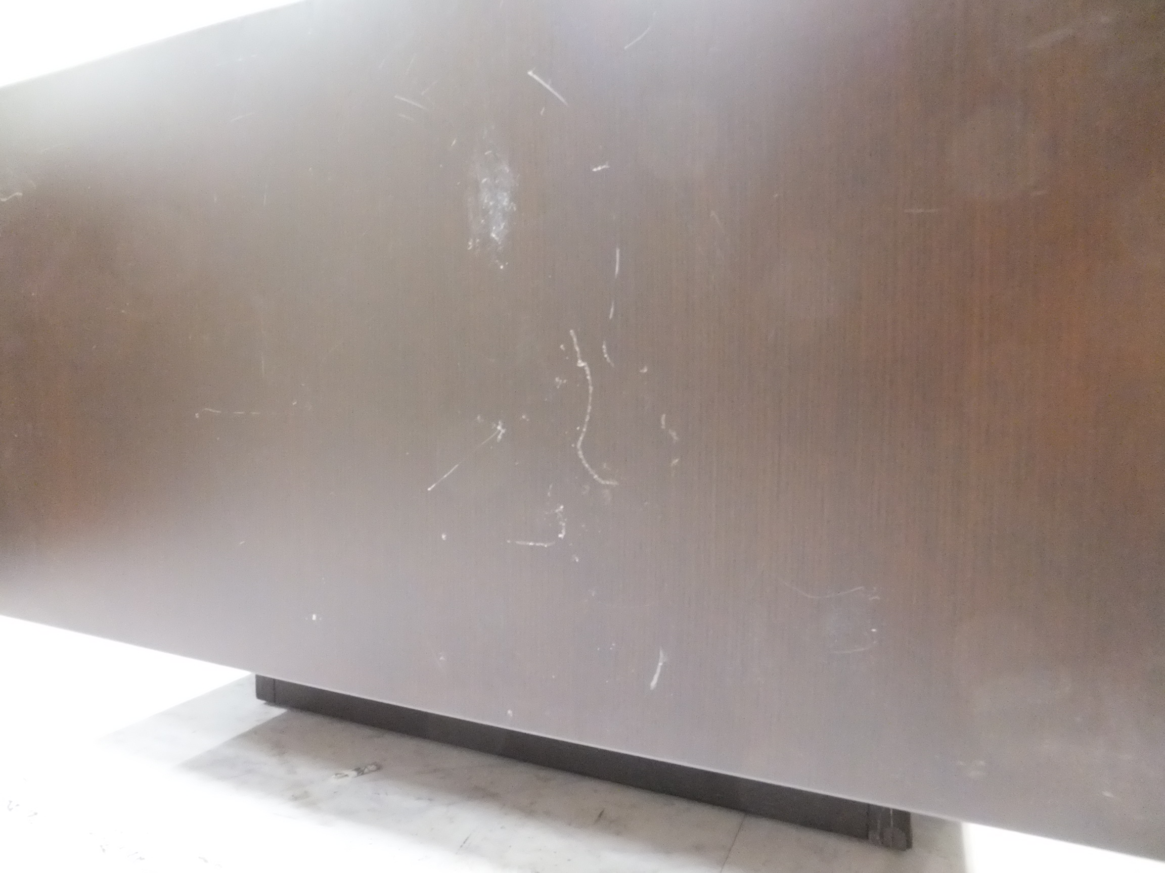 - 目立つ箇所複数ありソファの場合、深い破け、ホツレ、へたり、しわ等が多数ある。(例、背もたれ、肘かけ、座面等にある。)センターテーブルの場合、深い傷・凹みが商>品全体にある。(例、天板、脚にある。)