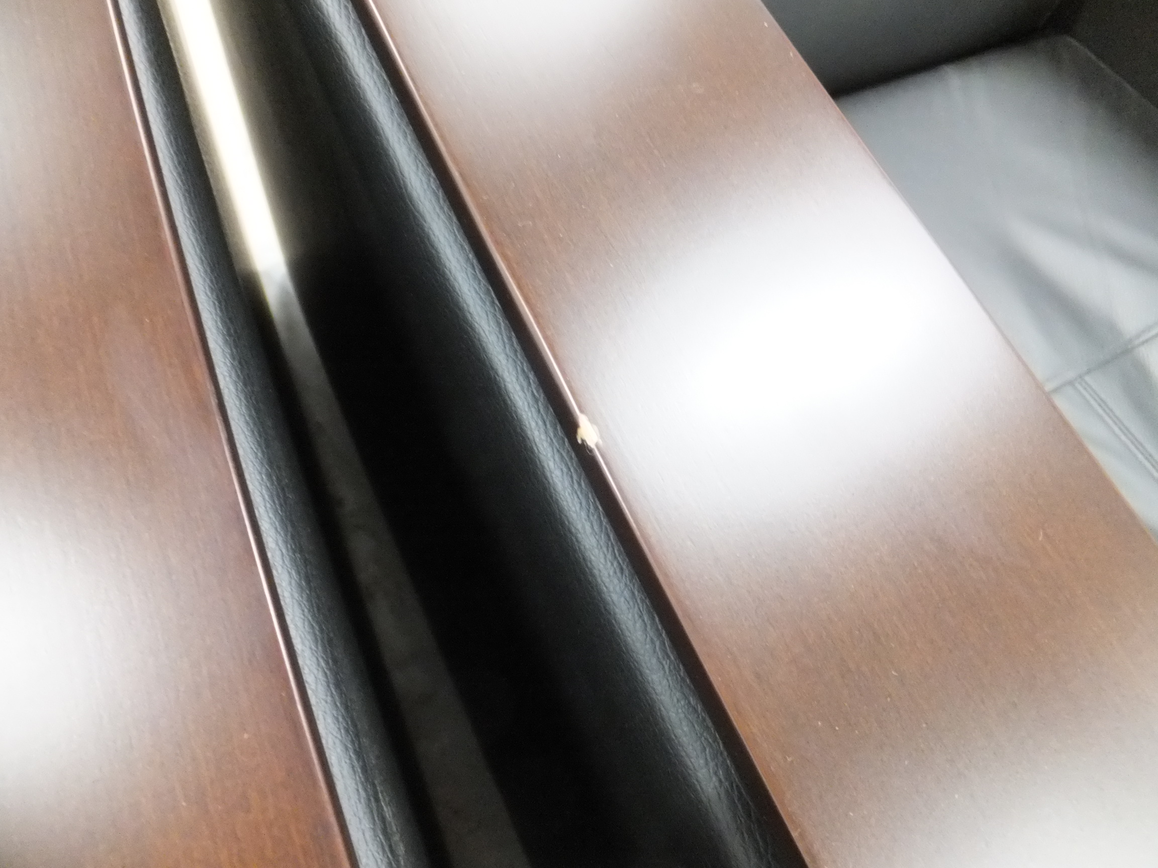 - あり黄ばみ・変色が広い範囲にうっすらある、または濃い黄ばみ・変色が一部ある。(例:三人用ソファ、二人用ソファ、一人用ソファの場合、背もたれ、肘かけ、座面等、 センターテーブルの場合、天板、脚にある。)