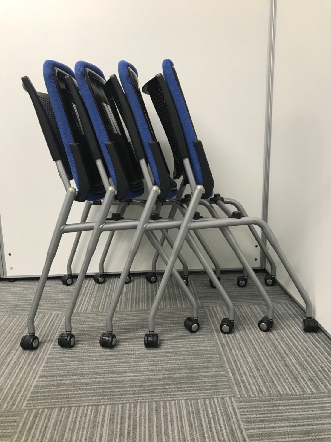 大人気商品!オカムラ製のスタッキングチェア4脚がオフィスバスターズ上野店に入荷致しました。