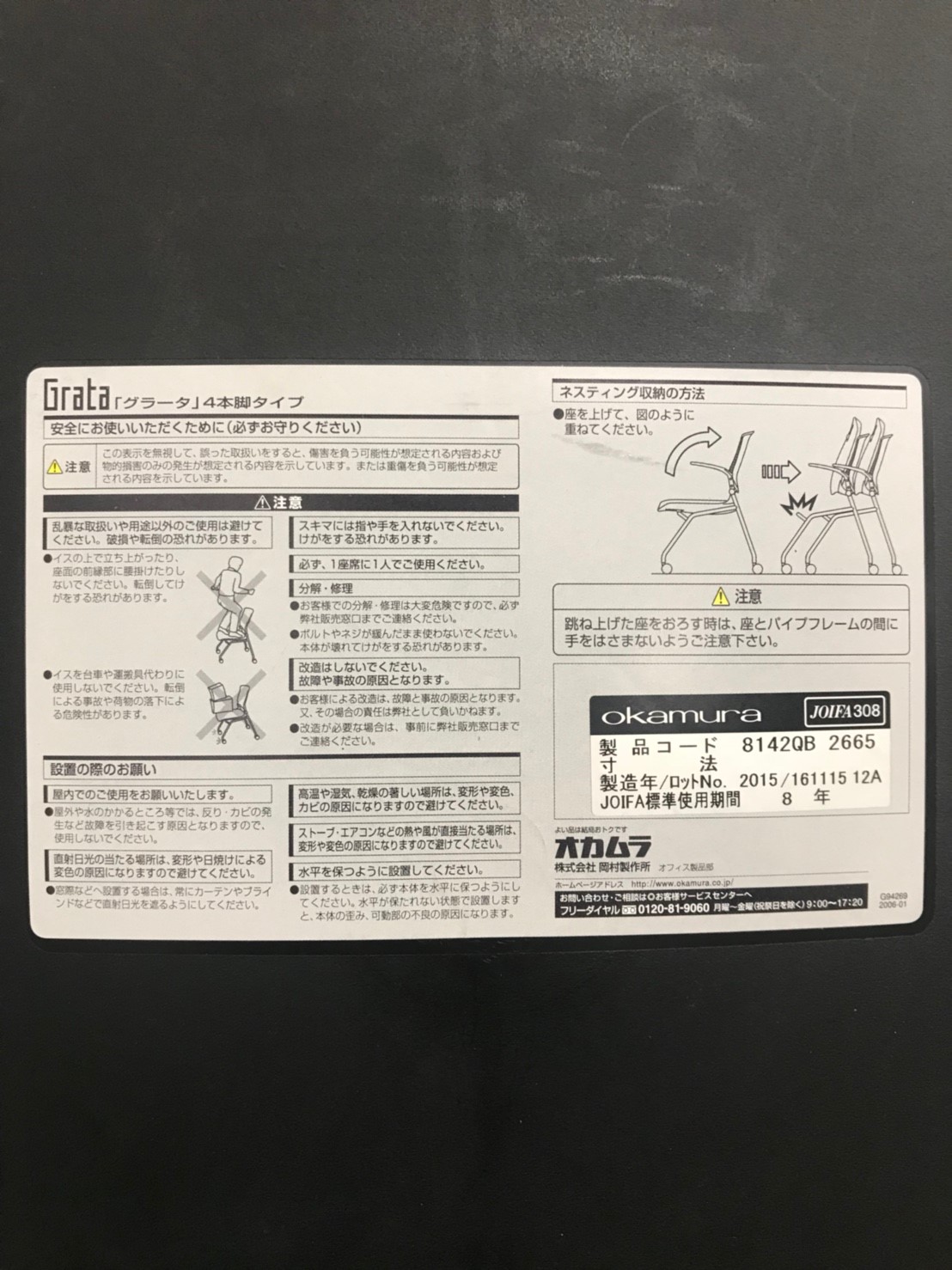 オカムラ製ネスティングチェア【グラータ】がオフィスバスターズ上野店に入荷致しました。