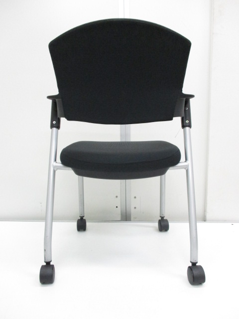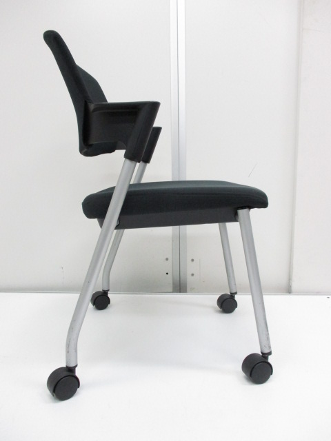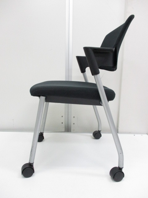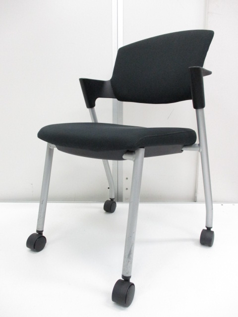 【シンプルスマートなスタッキングチェア!分厚いクッションで長時間でも快適な座り心地!】■スタッキングチェア 肘付ミーティングチェア ■固定肘 ■キャスター付 ■ブラック ■背面樹脂/コクヨ(KOKUYO/プロッティ