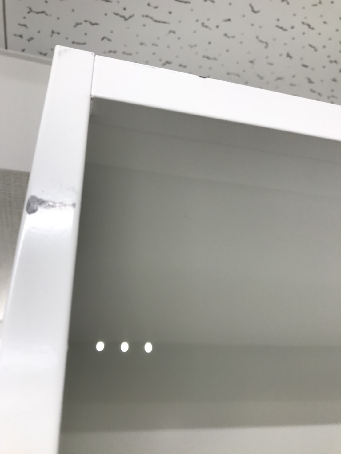 - 目立つ箇所あり傷・凹みが多数、深い傷・凹みが一部ある。(例、天板、正面、背部、サイド部分にある。)