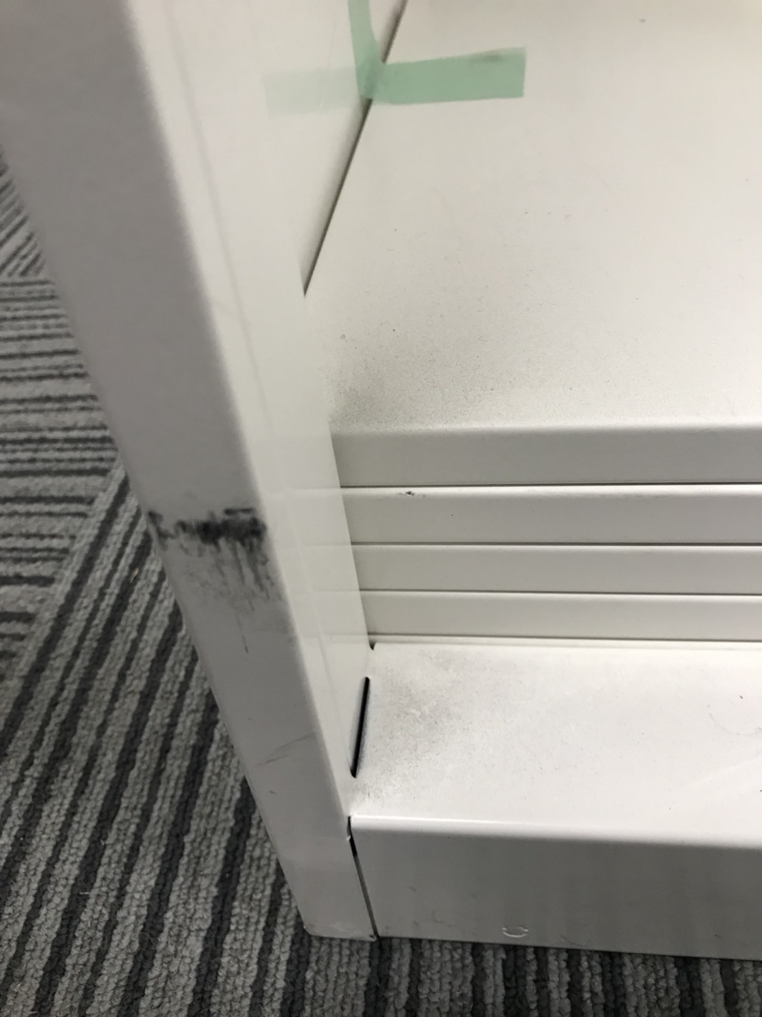 - 一部不具合ありそ引出の開閉不可、施錠不可、棚板無しといったの書庫の本来の効用を果たすための機能以外の一部が使用不可(例、扉、引出の開閉がしづらいなどがある。 )