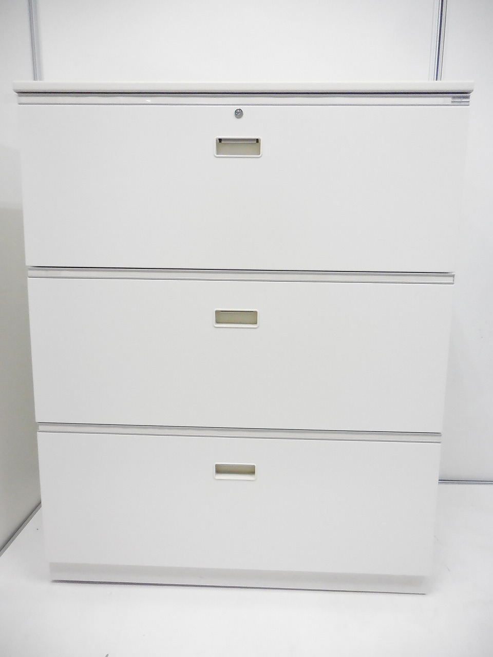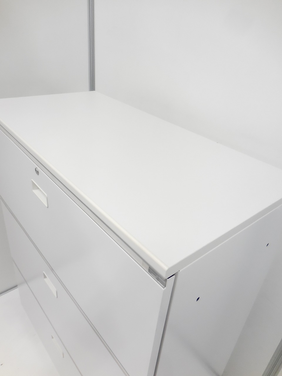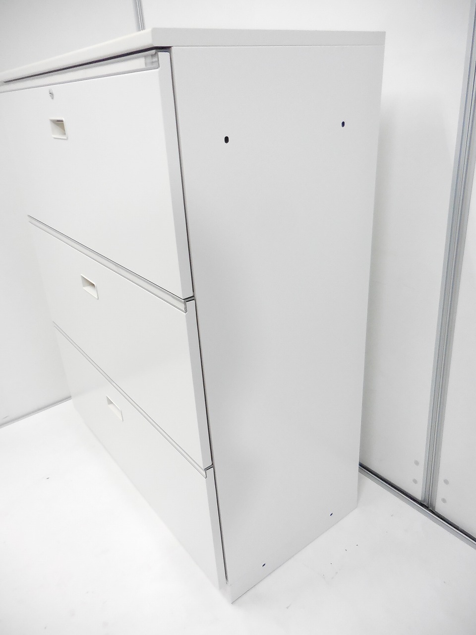 【A4ファイルも沢山収納可能!ホワイトカラーの人気シリーズ3段ラテラル書庫!】/オススメ(おすすめ) /人気商品【弊社使用欄:A01013834】3段ラテラル書庫/ローキャビネット/天板付き/ホワイト/シリンダー錠/ITOKI/THIN LINE■イトーキ/シンライン※取っ手部分日焼あり