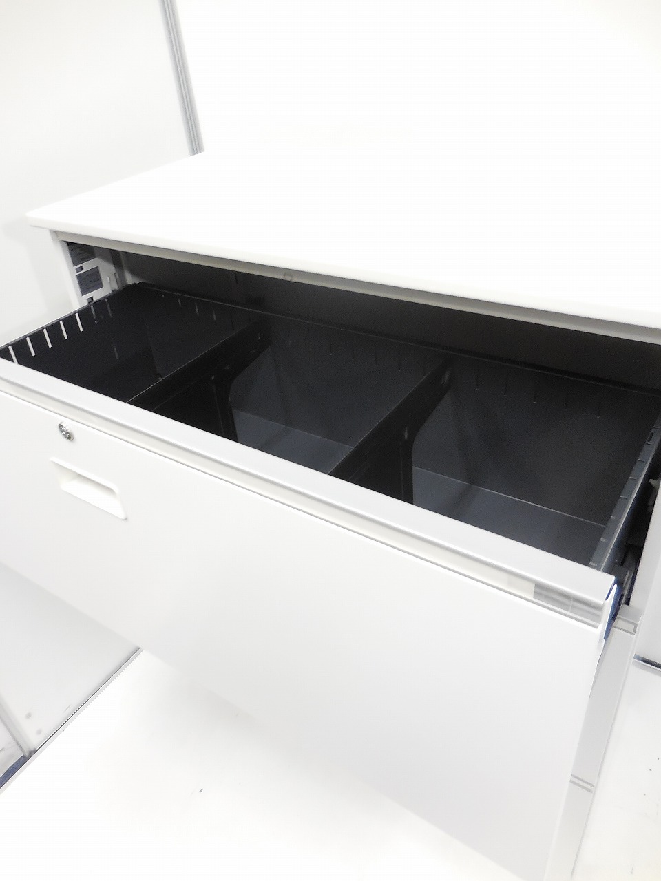 【珍しい2段ラテラルタイプ!】耐久性・機能性を兼ね備えたキャビネット!スペースにジャストフィットする引き出し型収納 ■イトーキ/シンライン/ホワイト シリンダー錠