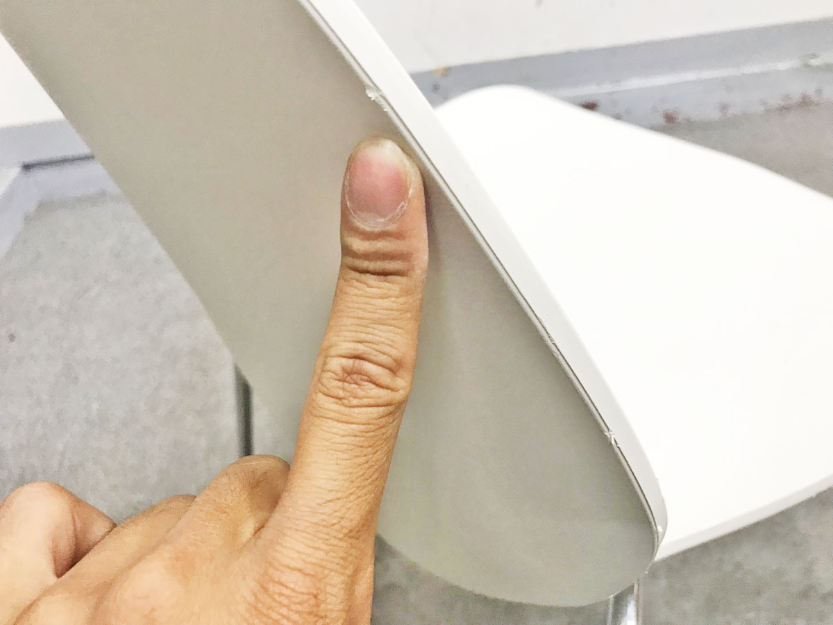 - かなり強い濃い黄ばみ・変色が商品全体にある。(例、座面・背もたれ、脚部等にある。)