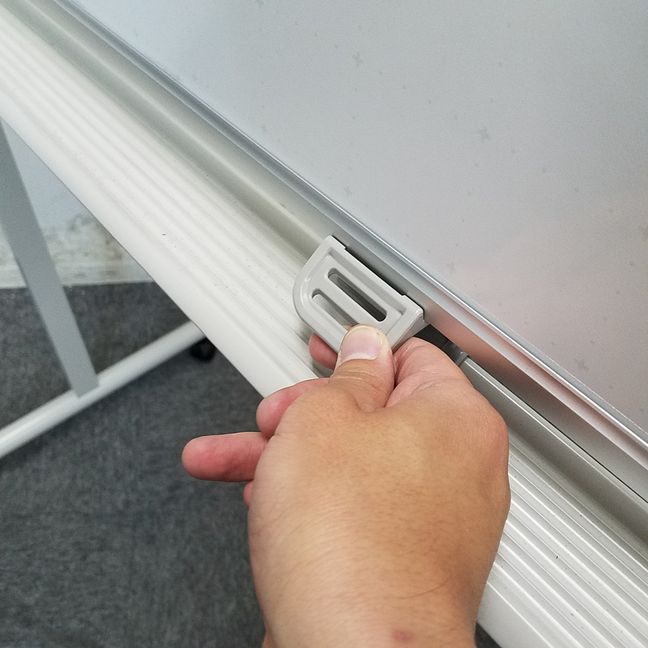 キャスター付きのホワイトボードなので移動させる際に便利でストッパーも付いておりますので