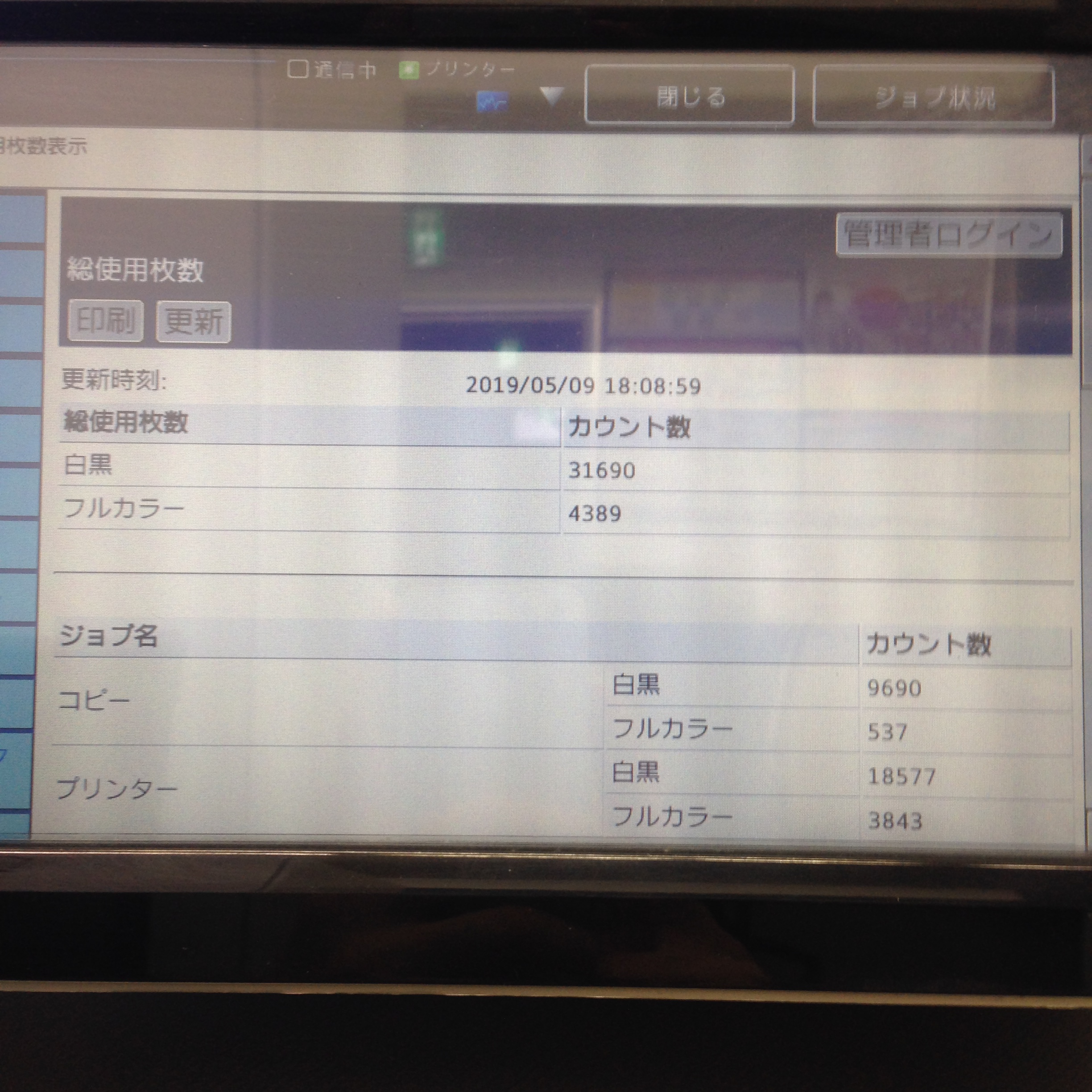 | 解像度(階調) | 読み取り モノクロ:600×600dpi、600×400dpi、600×300dpi フルカラー:600×600dpi 書き込み 600×600dpi、9600dpi相当×600dpi |
