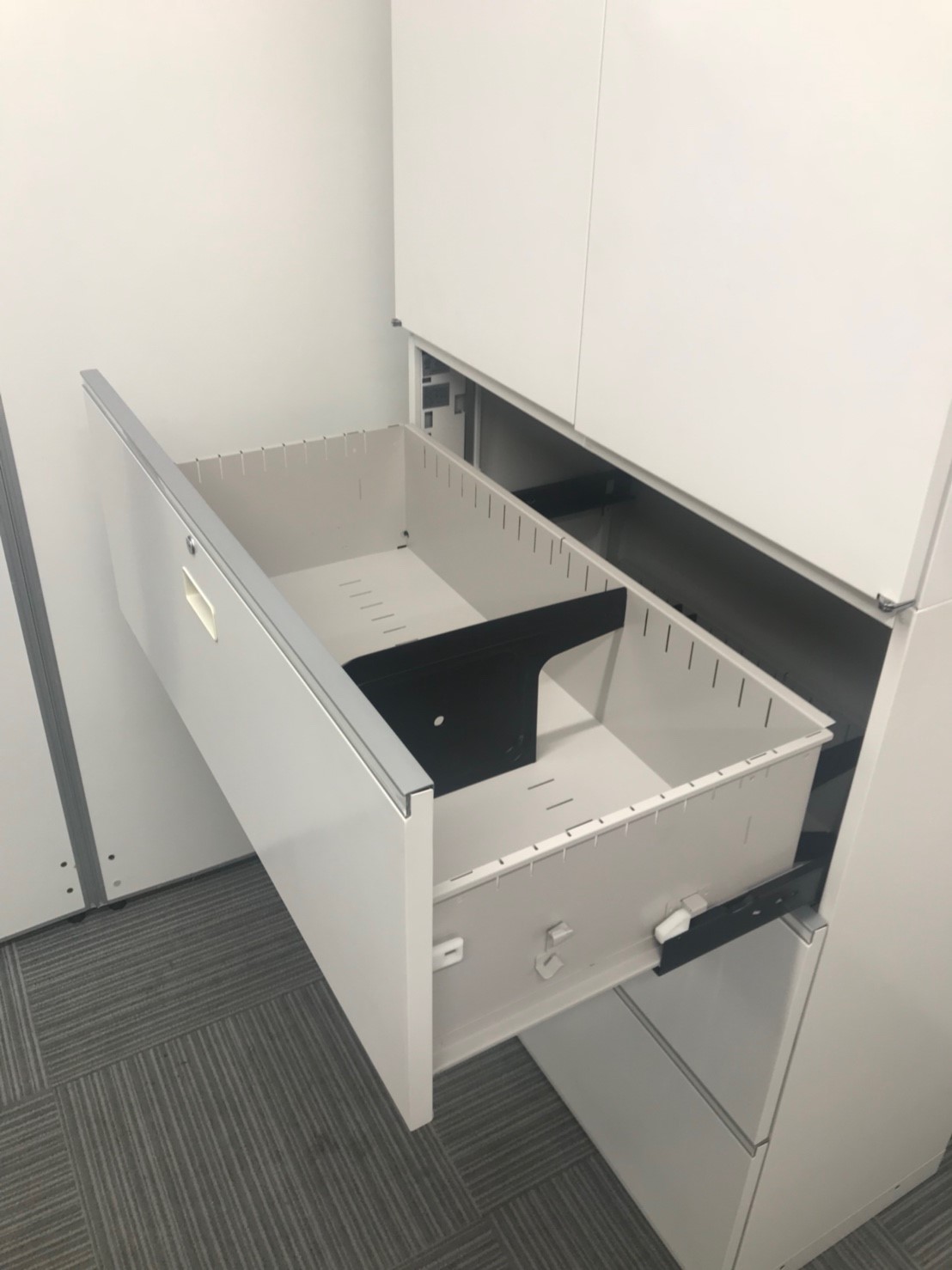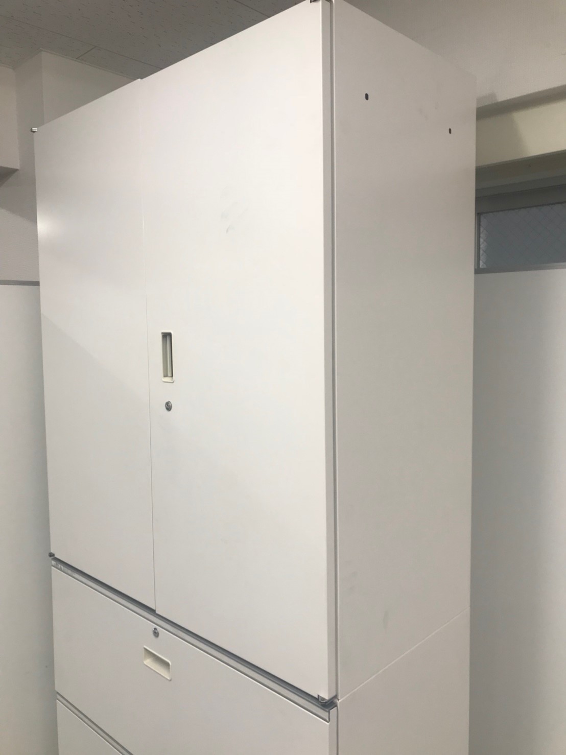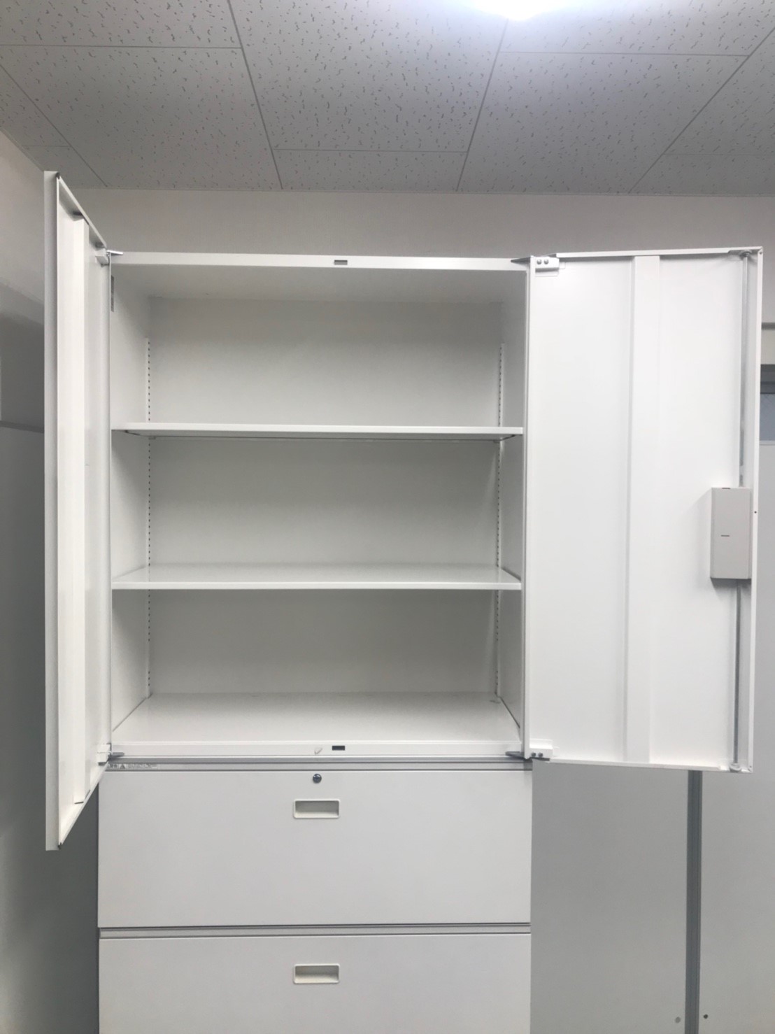 オフィスで定番の3段ラテラル+両開き書庫の組み合わせで省スペースかつ大量収納が実現!!