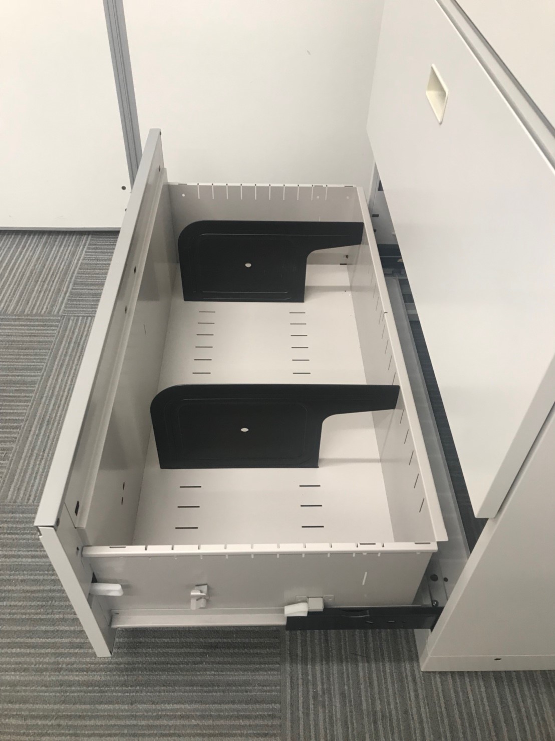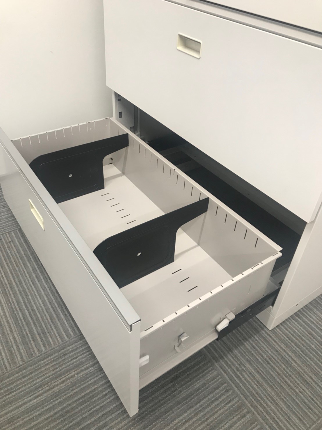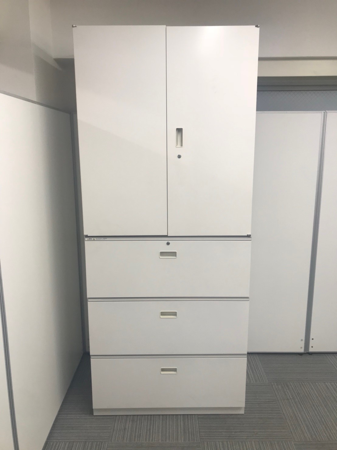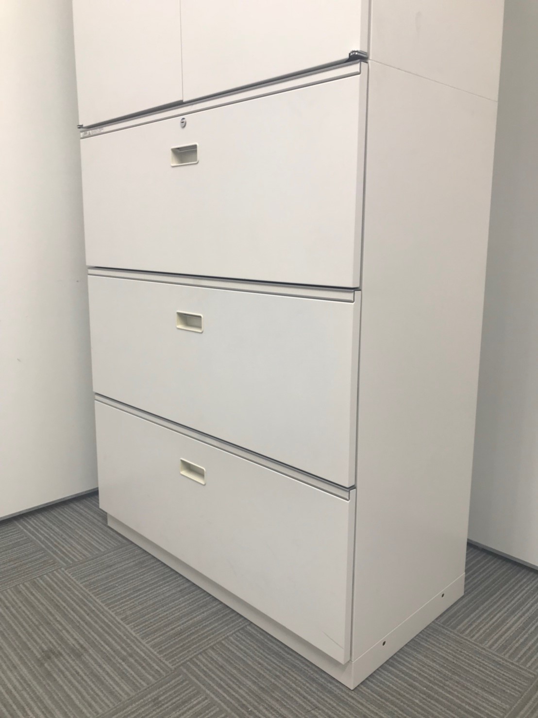 オフィスで定番の3段ラテラル+両開き書庫の組み合わせで省スペースかつ大量収納が実現!!