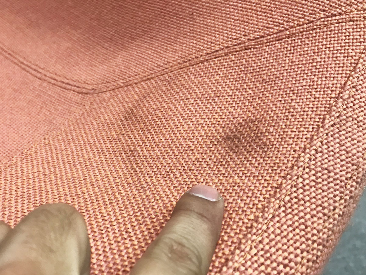 - あり黄ばみ・変色が広い範囲にうっすらある、または濃い黄ばみ・変色が一部ある。(例、座面・背もたれ、脚部等にある。)