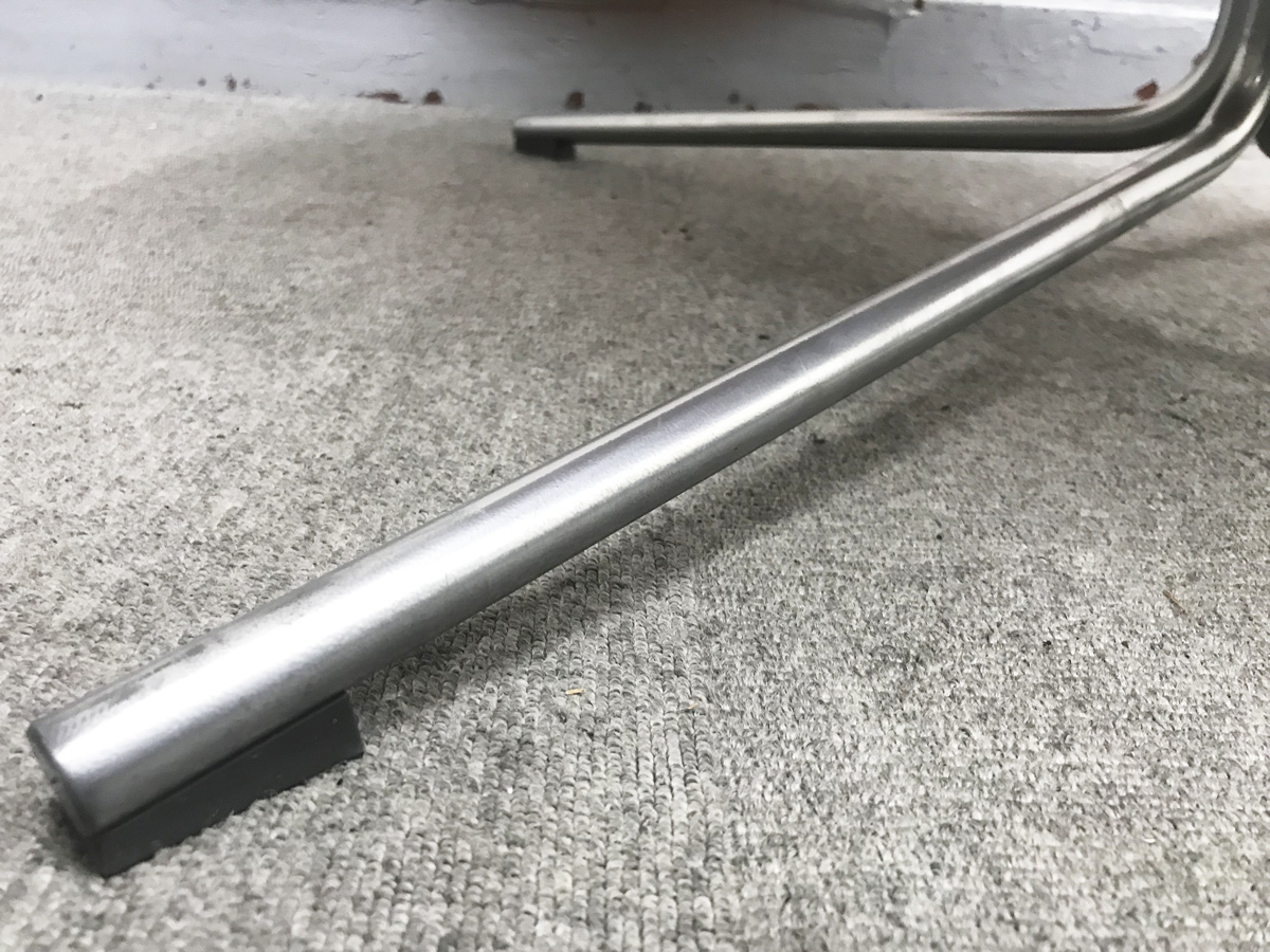 - かなり強い濃い黄ばみ・変色が商品全体にある。(例、座面・背もたれ、脚部等にある。)