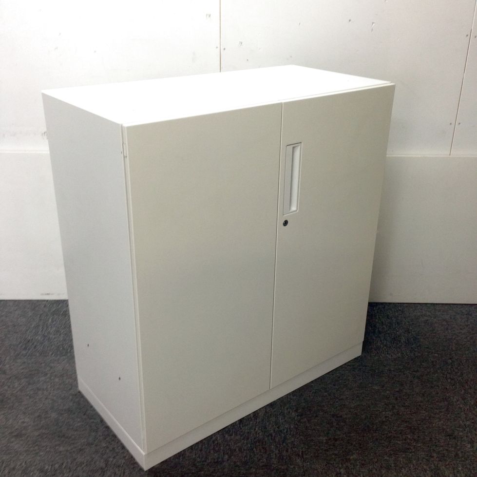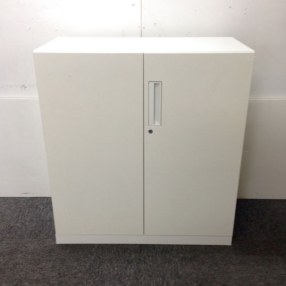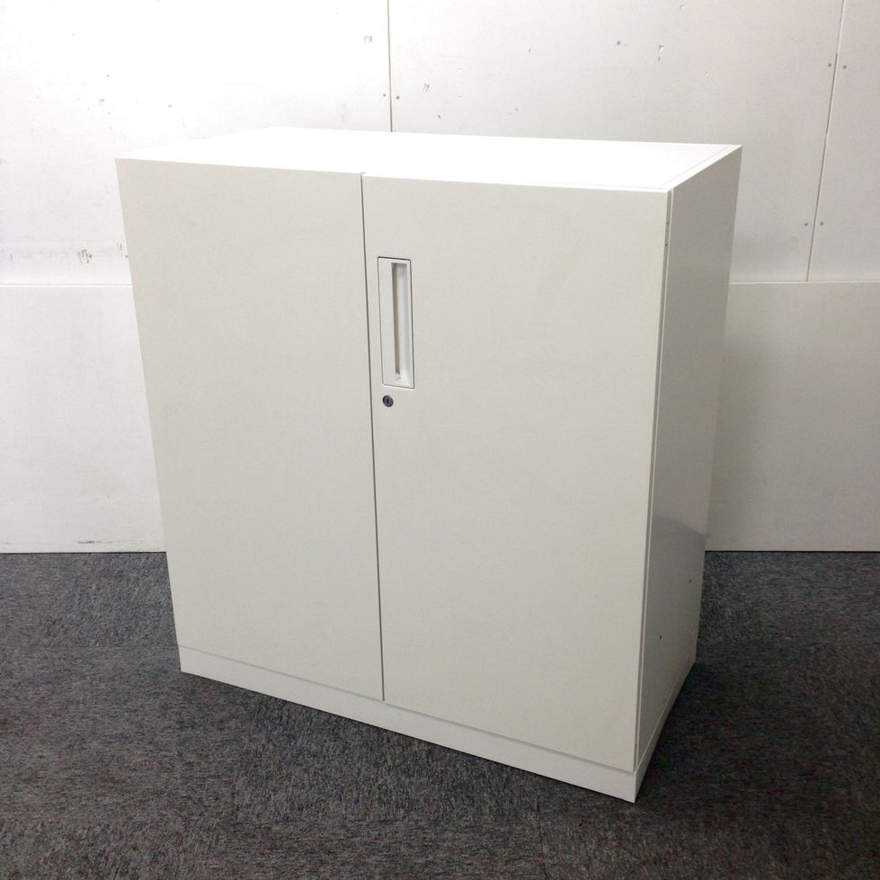 【収納物がひとめで分かる両開き戸タイプ!】■コクヨ(KOKUYO)製 エディア(EDIA)シリーズ 両開き書庫 ローキャビネット H1130㎜ ■天板・ベース付 ■ホワイト ■シリンダー錠【IB】