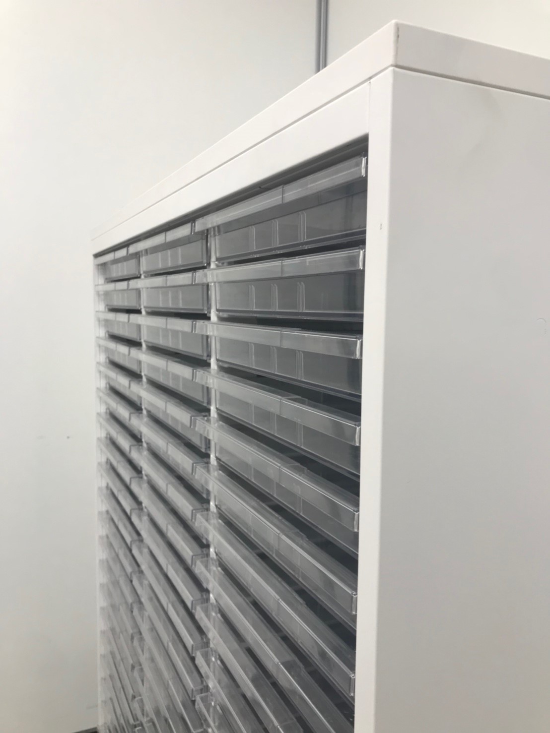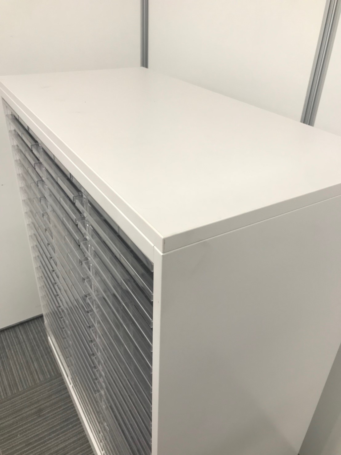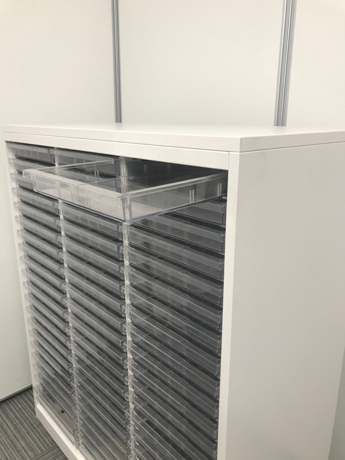 細かな収納に大助かり!! イトーキ製クリスタルトレイ!!3列21段(63つのトレイ)在庫がある店舗一覧