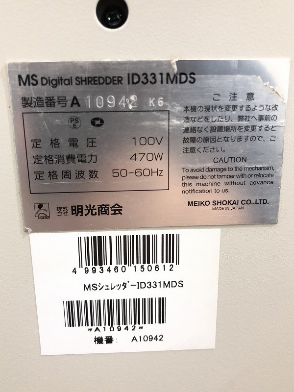 【中古】 IDシリーズ MS-ID331MDS 明光商会 シュレッダー 254919