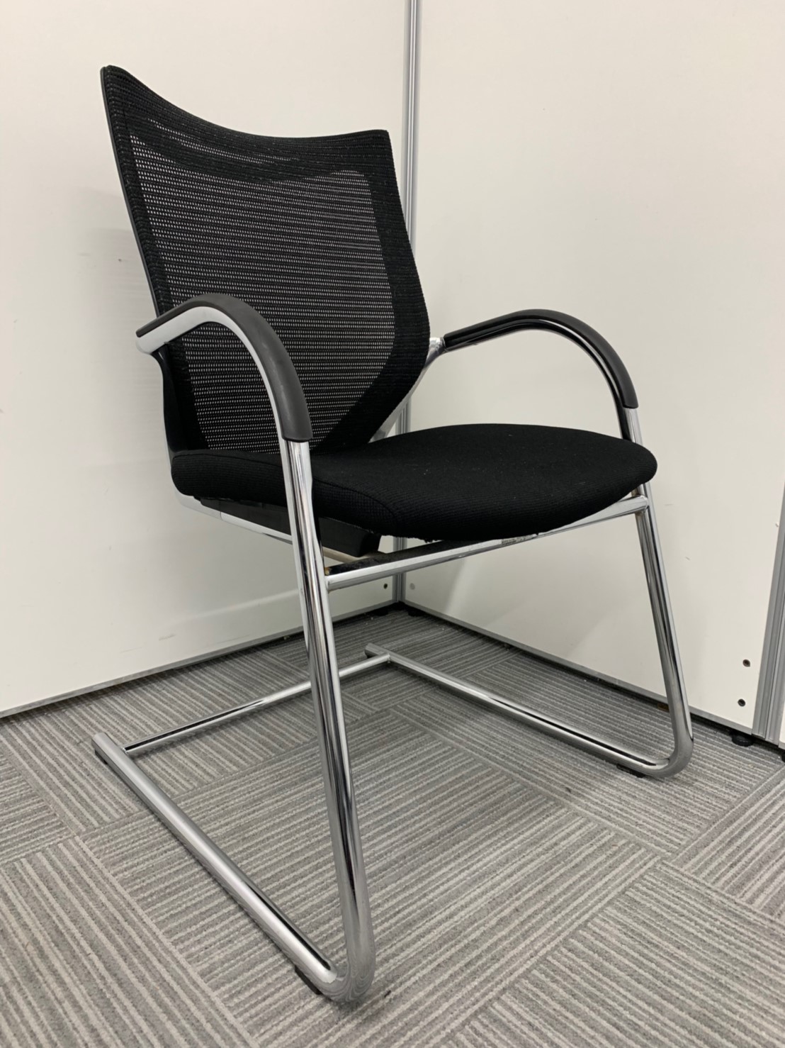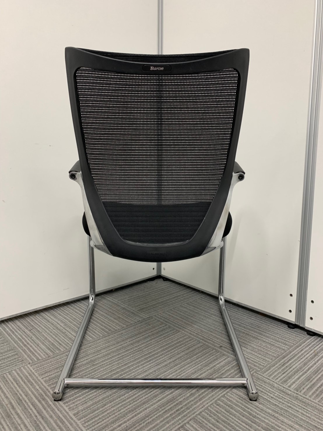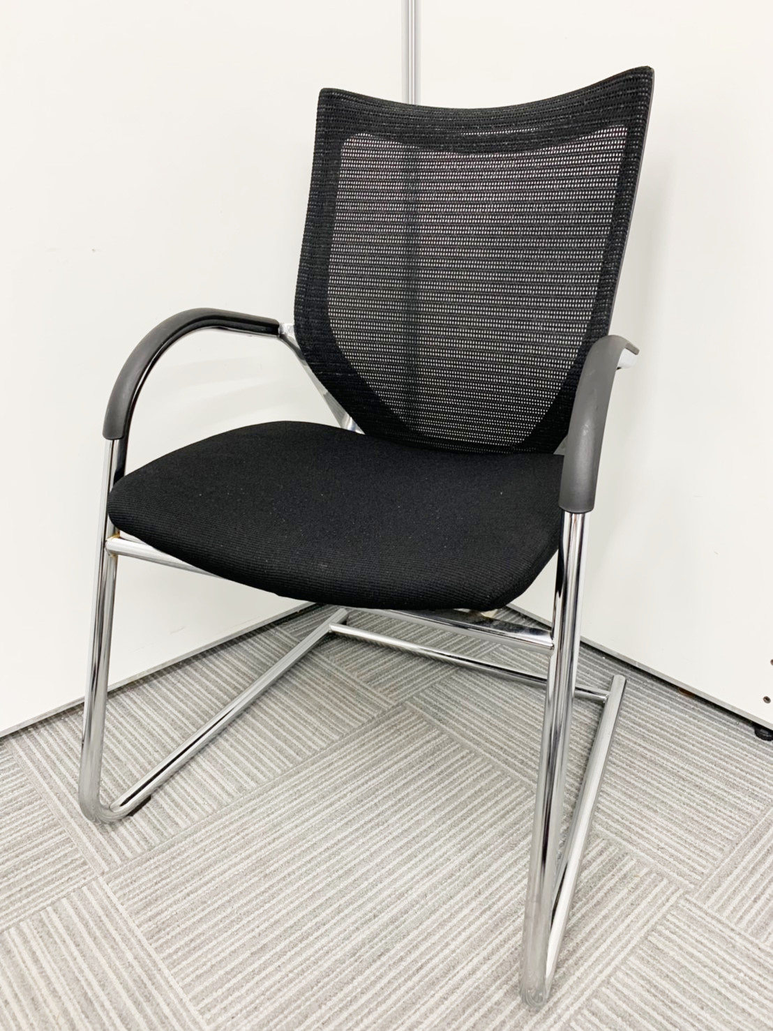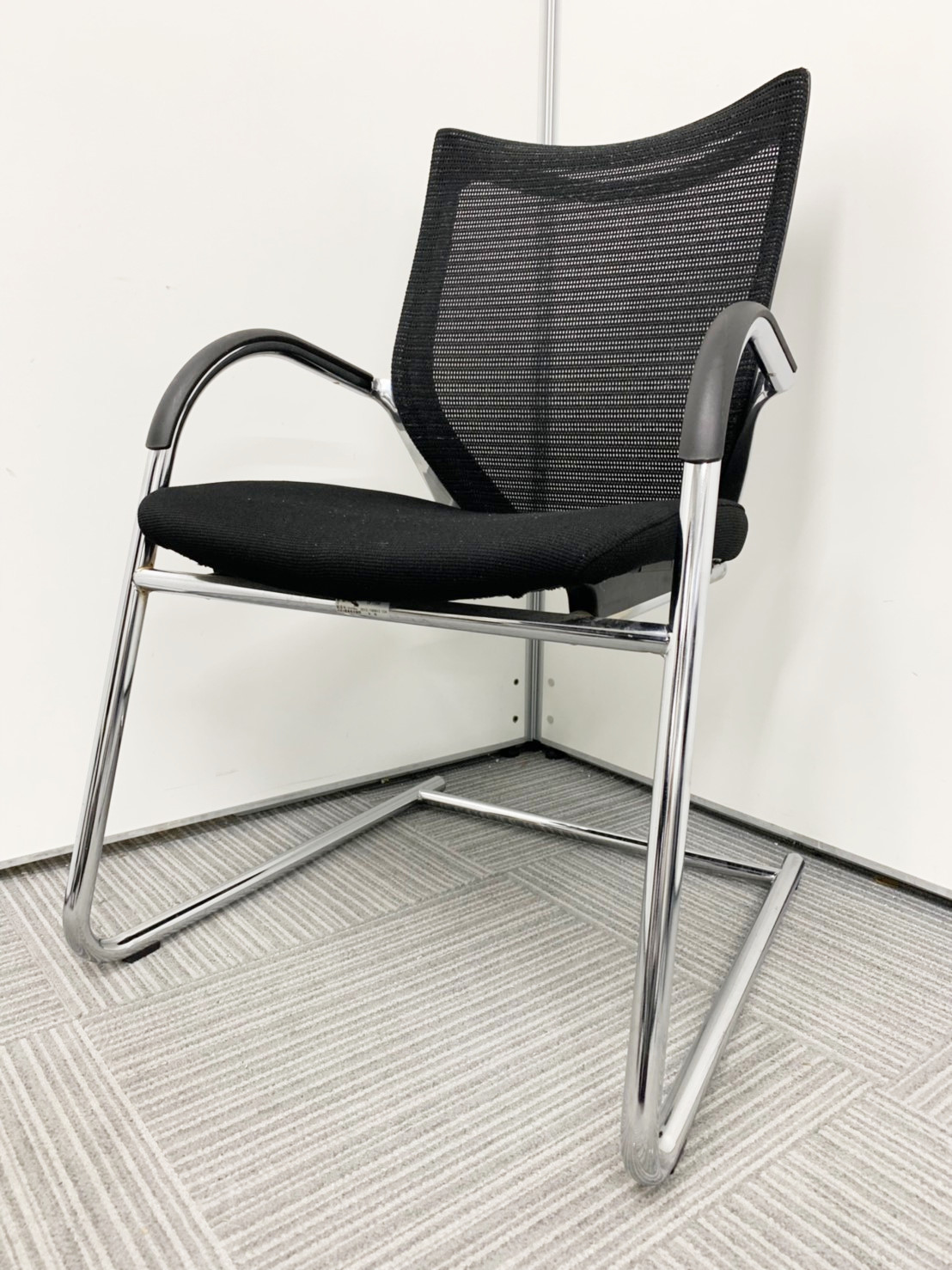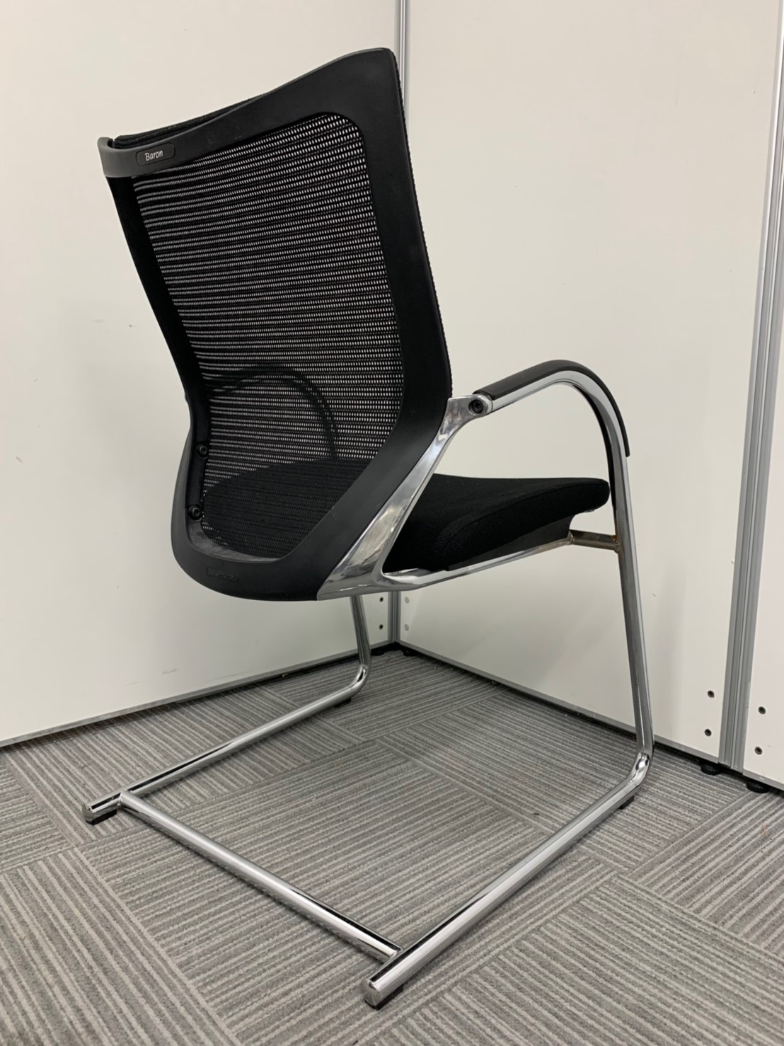 【在庫入替セール】オカムラ バロン ゲストチェア(ミーティングチェア) 背メッシュ×座クッション カンチレバー脚 ブラック×クロームメッキ