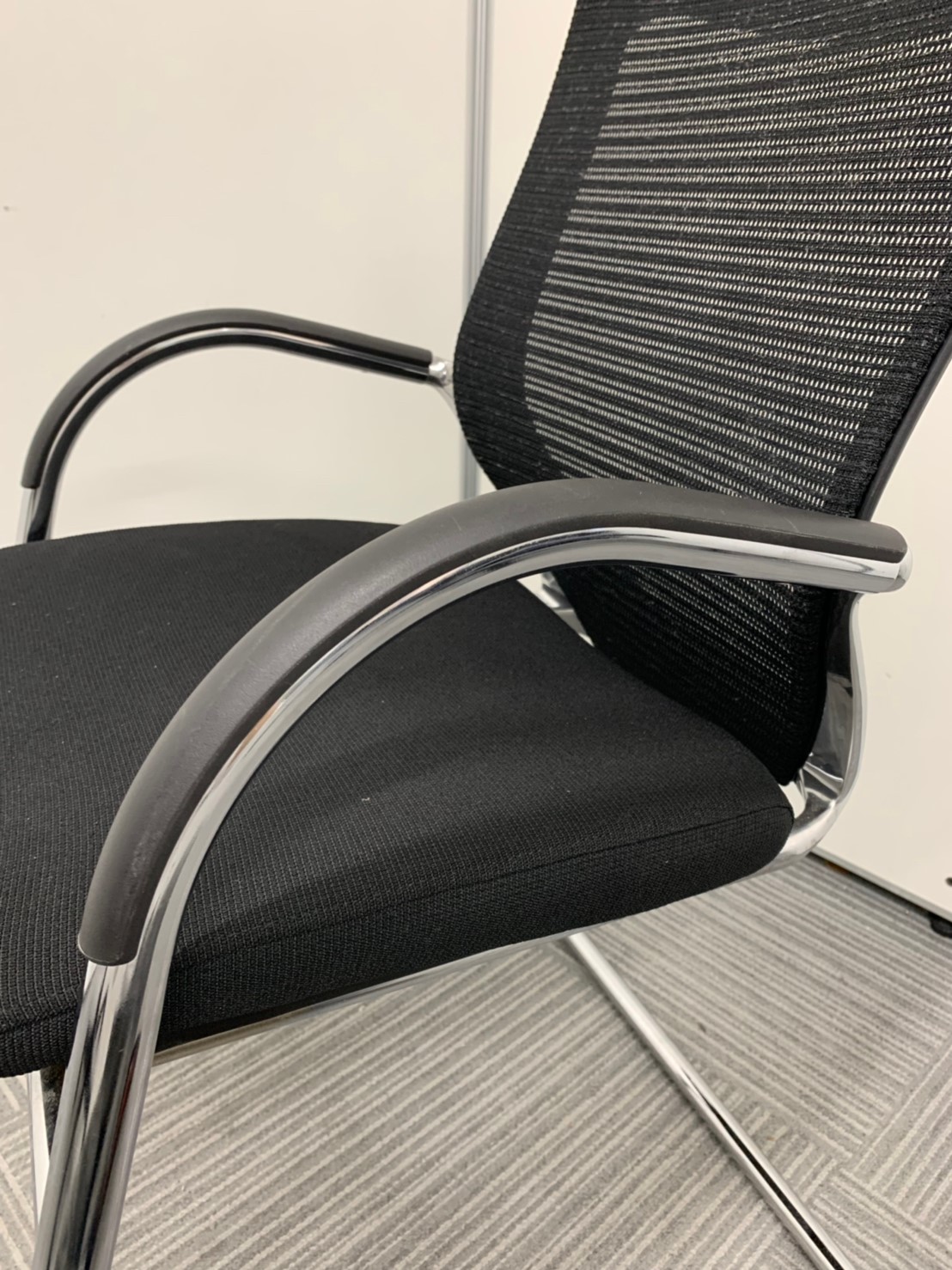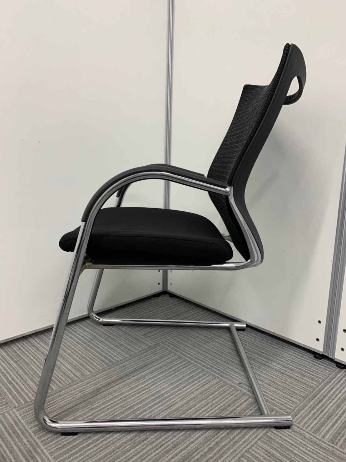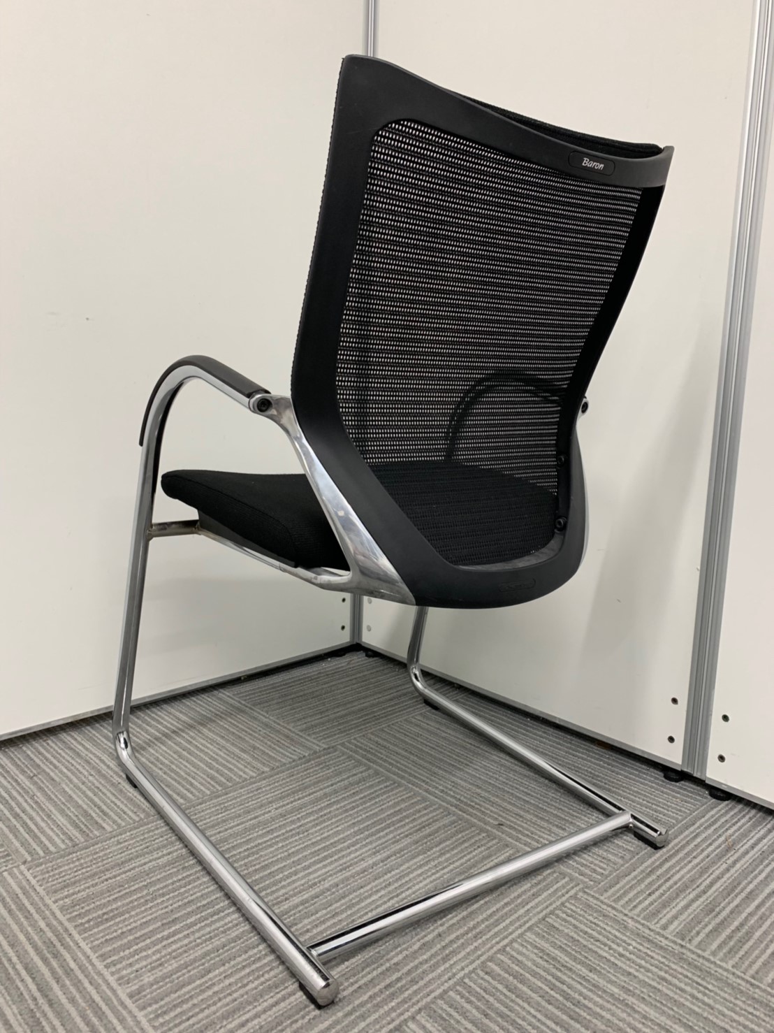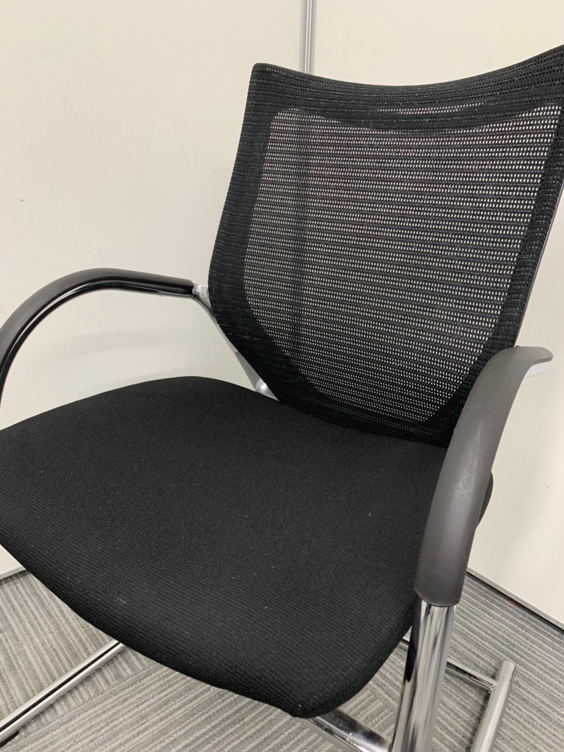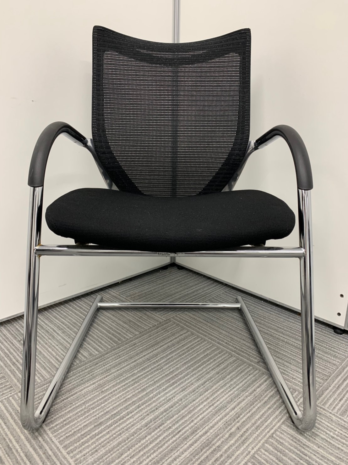 【在庫入替セール】オカムラ バロン ゲストチェア(ミーティングチェア) 背メッシュ×座クッション カンチレバー脚 ブラック×クロームメッキ