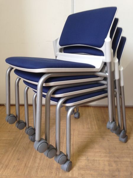 【12脚入荷】【キャスター付きなので何処でも使える!】内田洋行製・スタッキングチェア ブルーカラー- 名古屋本店