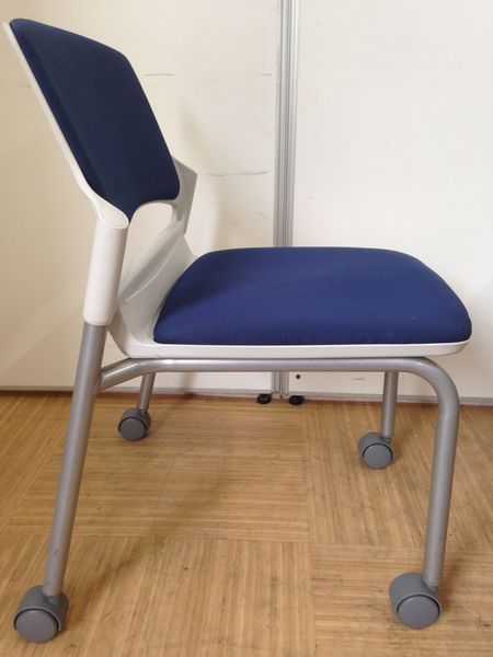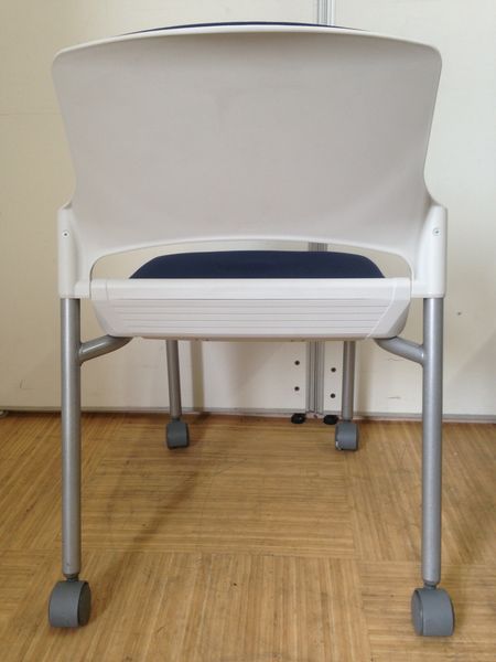【残り2脚の為、お安く!】【キャスター付きで使いやすい!ミーティングに最適!】■ウチダ(UCHIDA)製 MF-180シリーズ スタッキングチェア ミーティングチェア ■キャスター付き ■レイズンブルー×ホワイトシェル