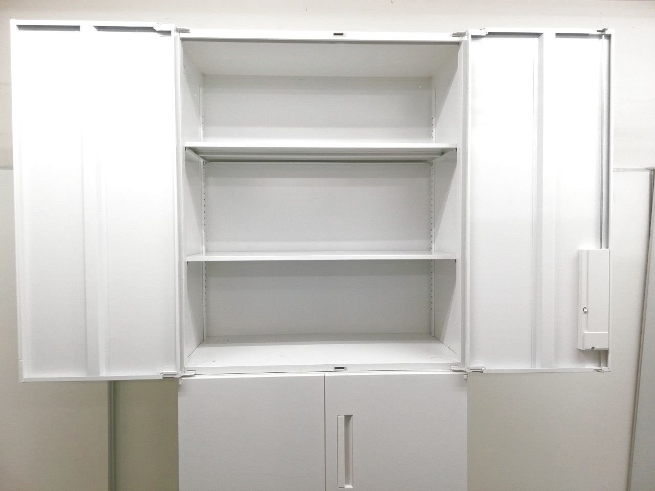 【在庫入替セール品!】人気の観音開きタイプ!取っ手が大きく使い勝手のよい定番キャビネット! ■内田洋行/HSシリーズ/ホワイト 天板ナチュラル