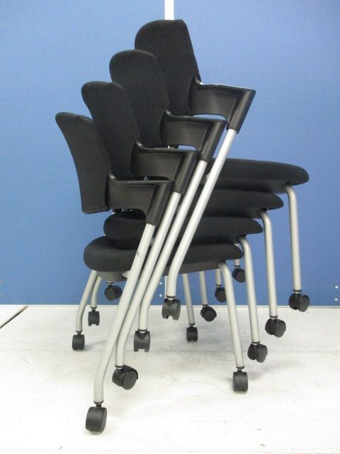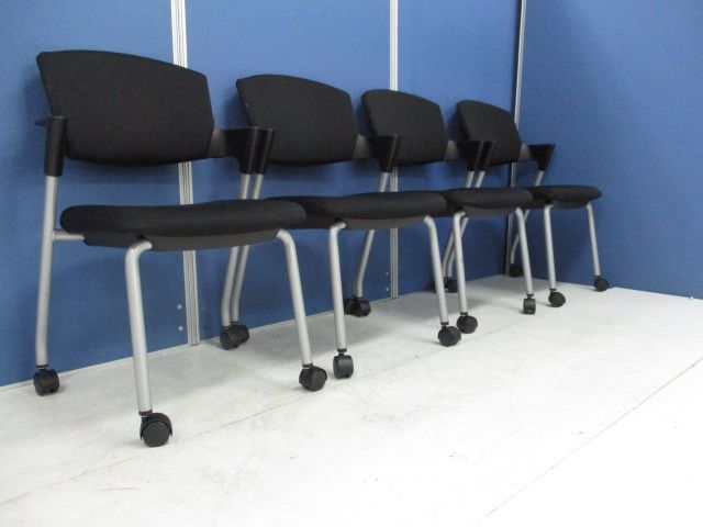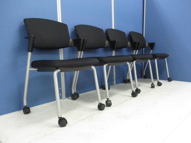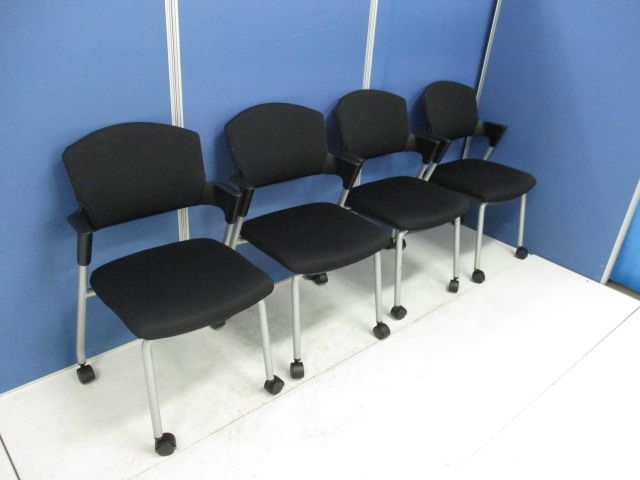 【6/16・8脚入荷予定!】【シンプルスマートなスタッキングチェア!分厚いクッションで長時間でも快適な座り心地!】■コクヨ製 プロッティ スタッキングチェア 肘付ミーティングチェア ■固定肘 ■キャスター付 ■ブラック ■背面樹脂 オフィスバスターズ梅田本店