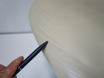 - かなり強い濃い黄ばみ・変色が商品全体にある。(例、座面・背もたれ、脚部等にある。)