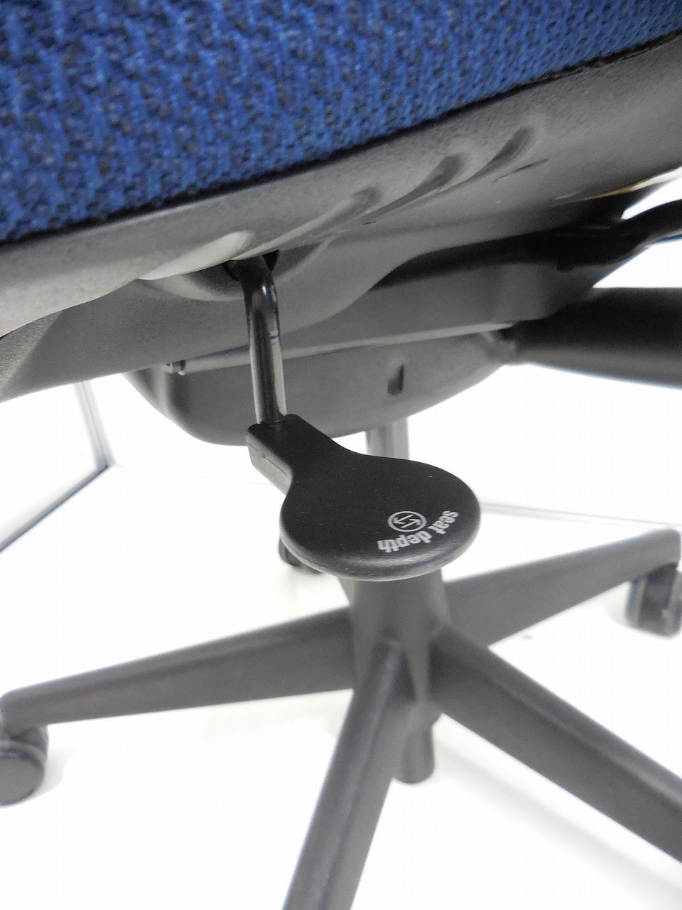 - 前後75㎜で調節可能。様々な体格にフィットします。座前縁部チルト機構も搭載で、前傾姿勢時の大腿部への負担も軽減します。