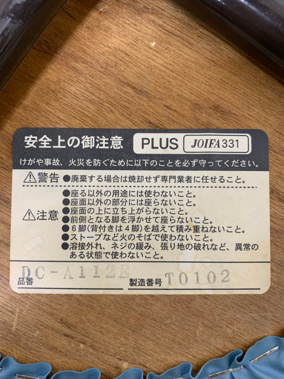 - 若干あり黄ばみ・変色が一部ある。。(例、座面・背もたれ、脚部等にある。)