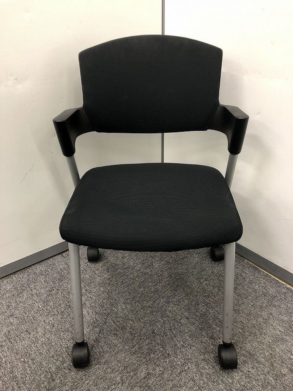 【シンプルスマートなスタッキングチェア!分厚いクッションで長時間でも快適な座り心地!】■スタッキングチェア 肘付ミーティングチェア ■固定肘 ■キャスター付 ■ブラック ■背面樹脂/コクヨ(KOKUYO/プロッティ