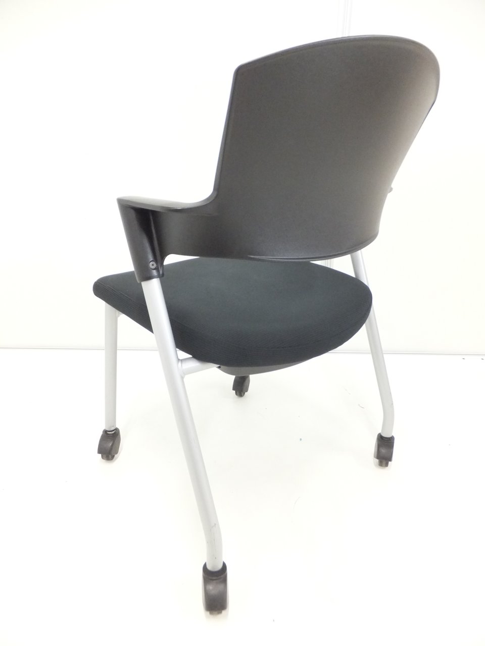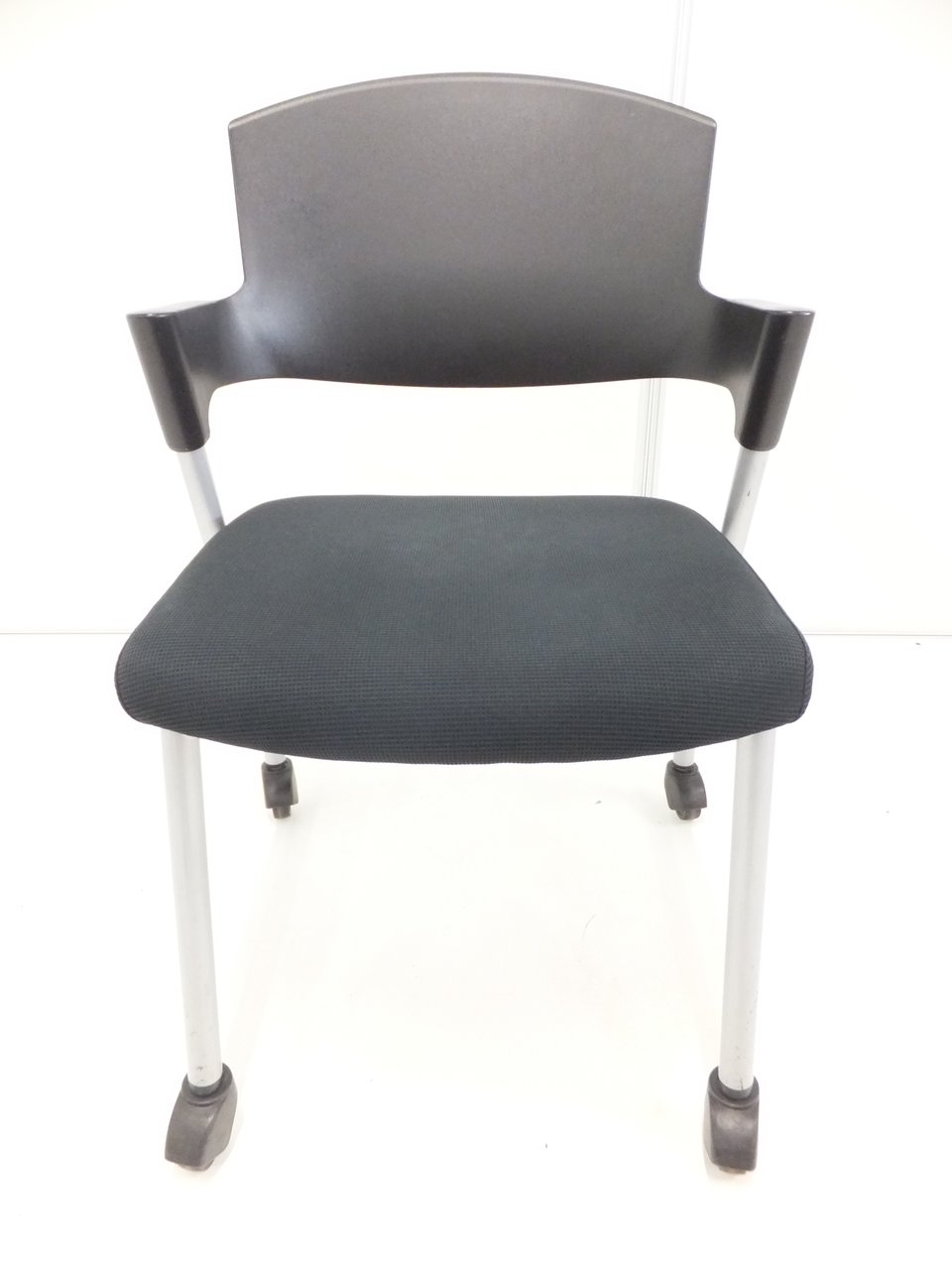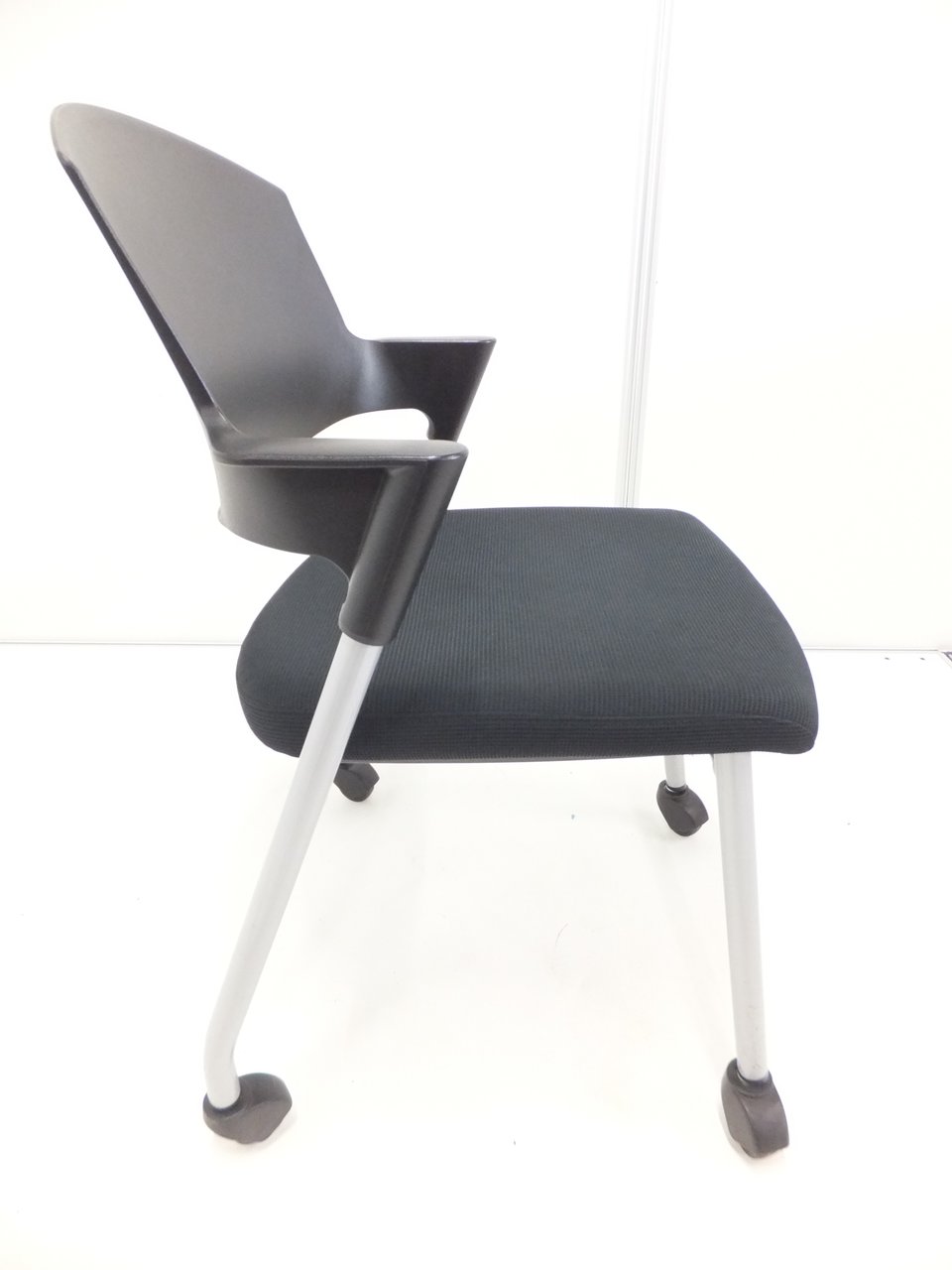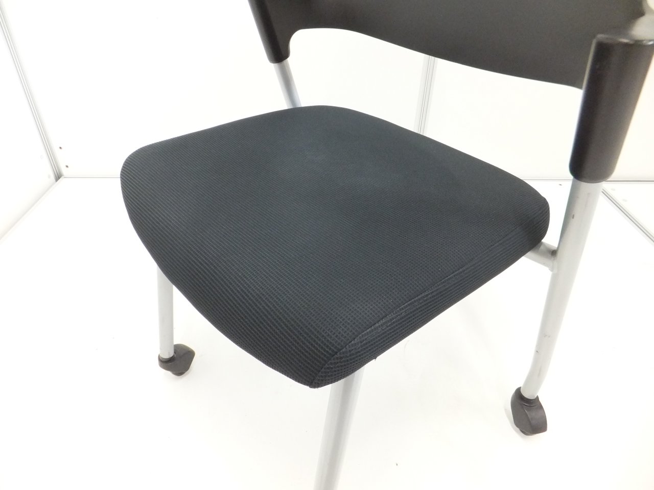 【シンプルスマートなスタッキングチェア!分厚いクッションで長時間でも快適な座り心地!】■スタッキングチェア 肘付ミーティングチェア ■固定肘 ■キャスター付 ■ブラック ■背面樹脂/コクヨ(KOKUYO/プロッティ