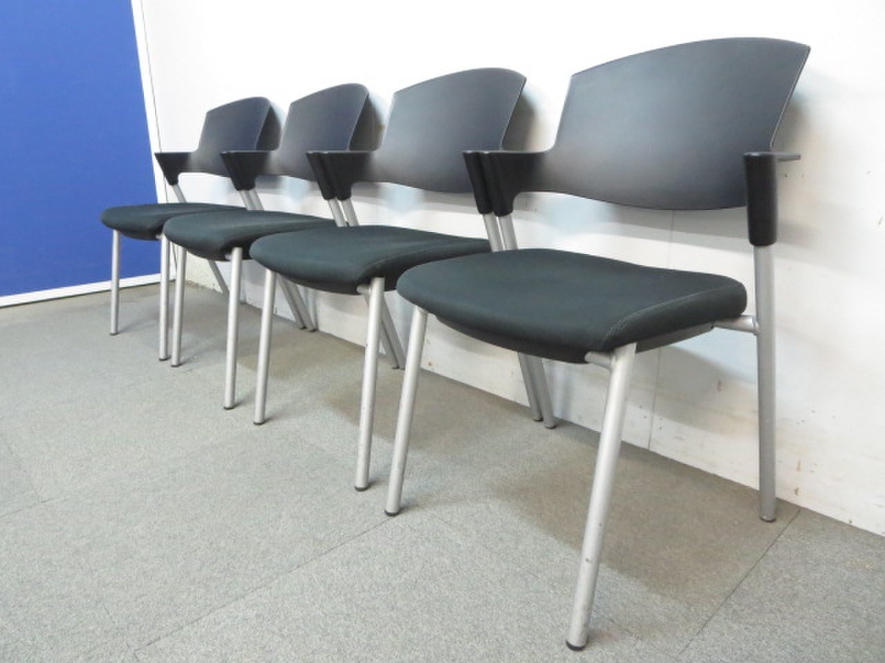 【スタイリッシュなデザイン!】■コクヨ製 プロッティ スタッキングチェア4脚セット ブラック【J】- 川崎店