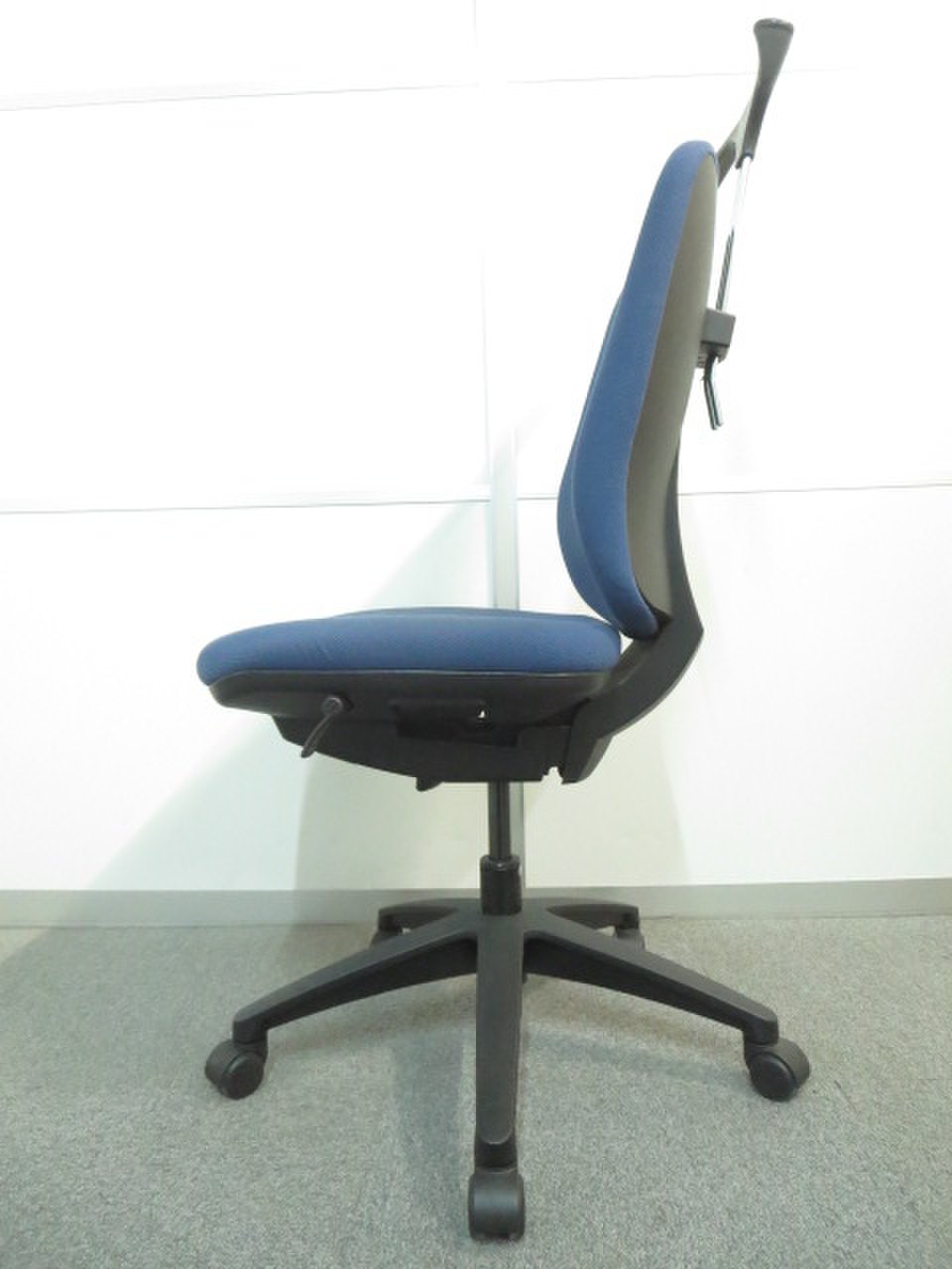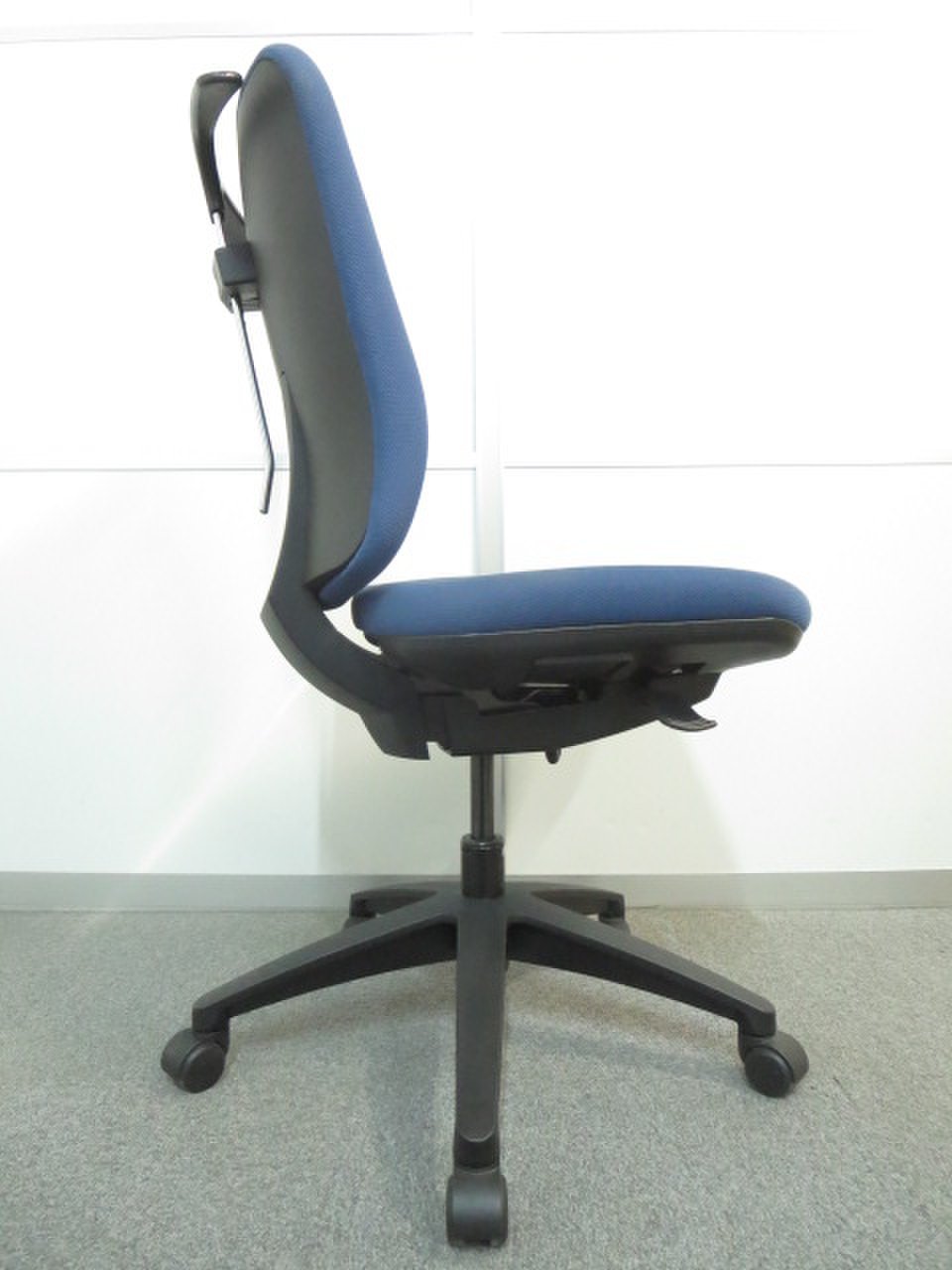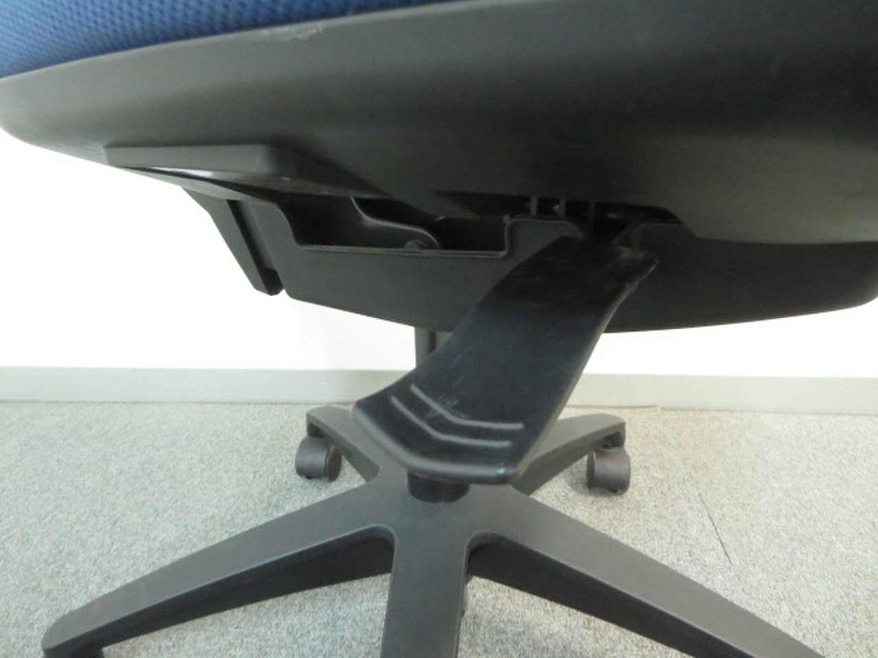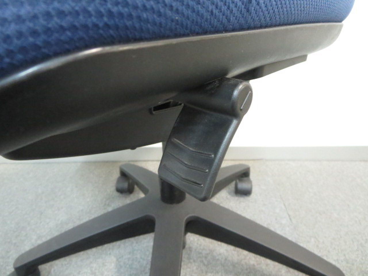 最前傾時に、背座の動きをとめるフロントワンロック機構のレバーが座面左下にあります。