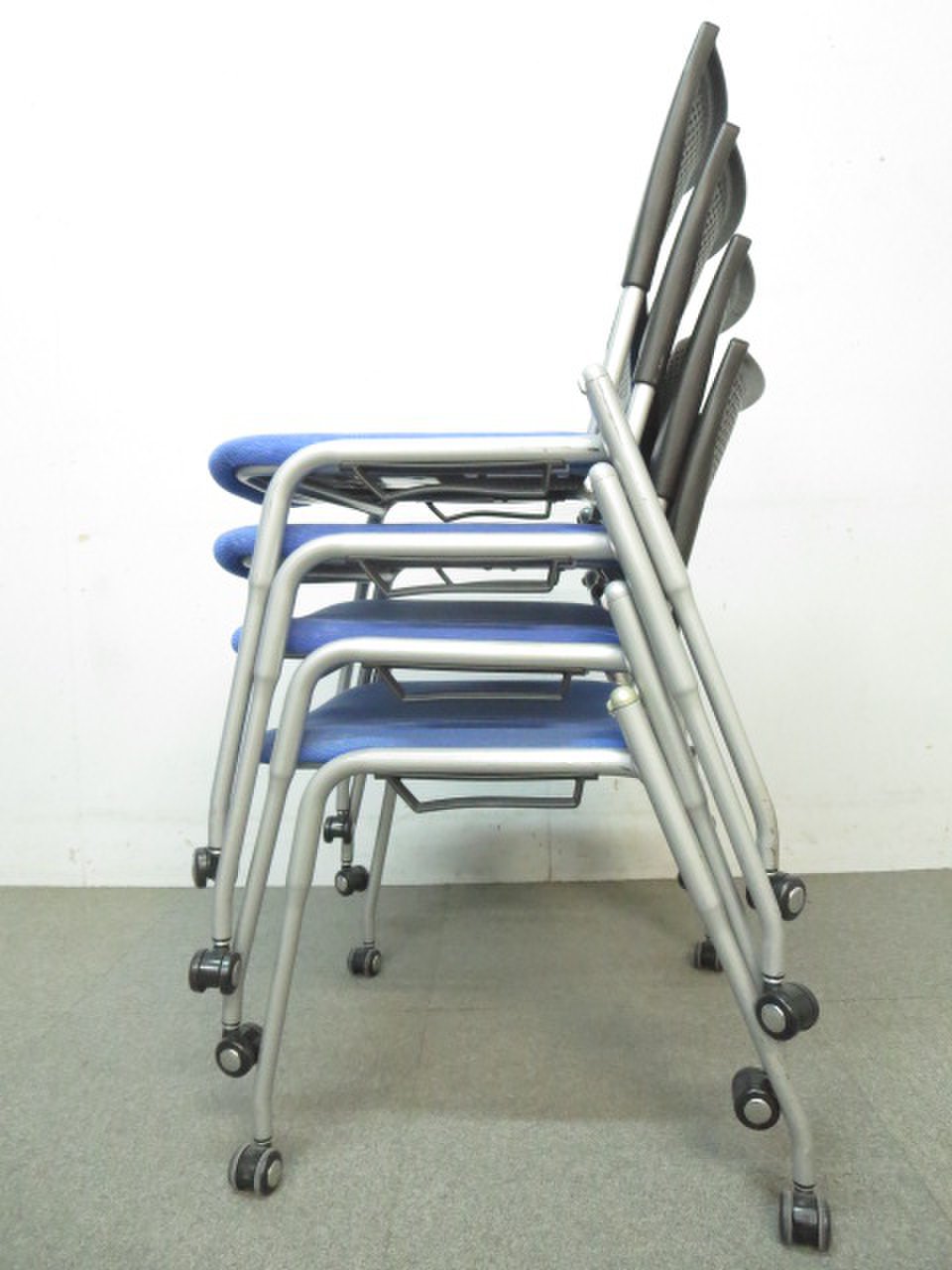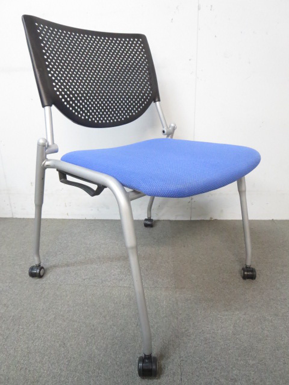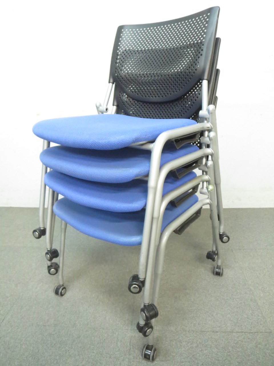 【スムーズに動かせるキャスター付!】■オカムラ製 スタッキングチェア ブルー【おつとめ品!】サーキュラーバリューCO2削減量の算出について