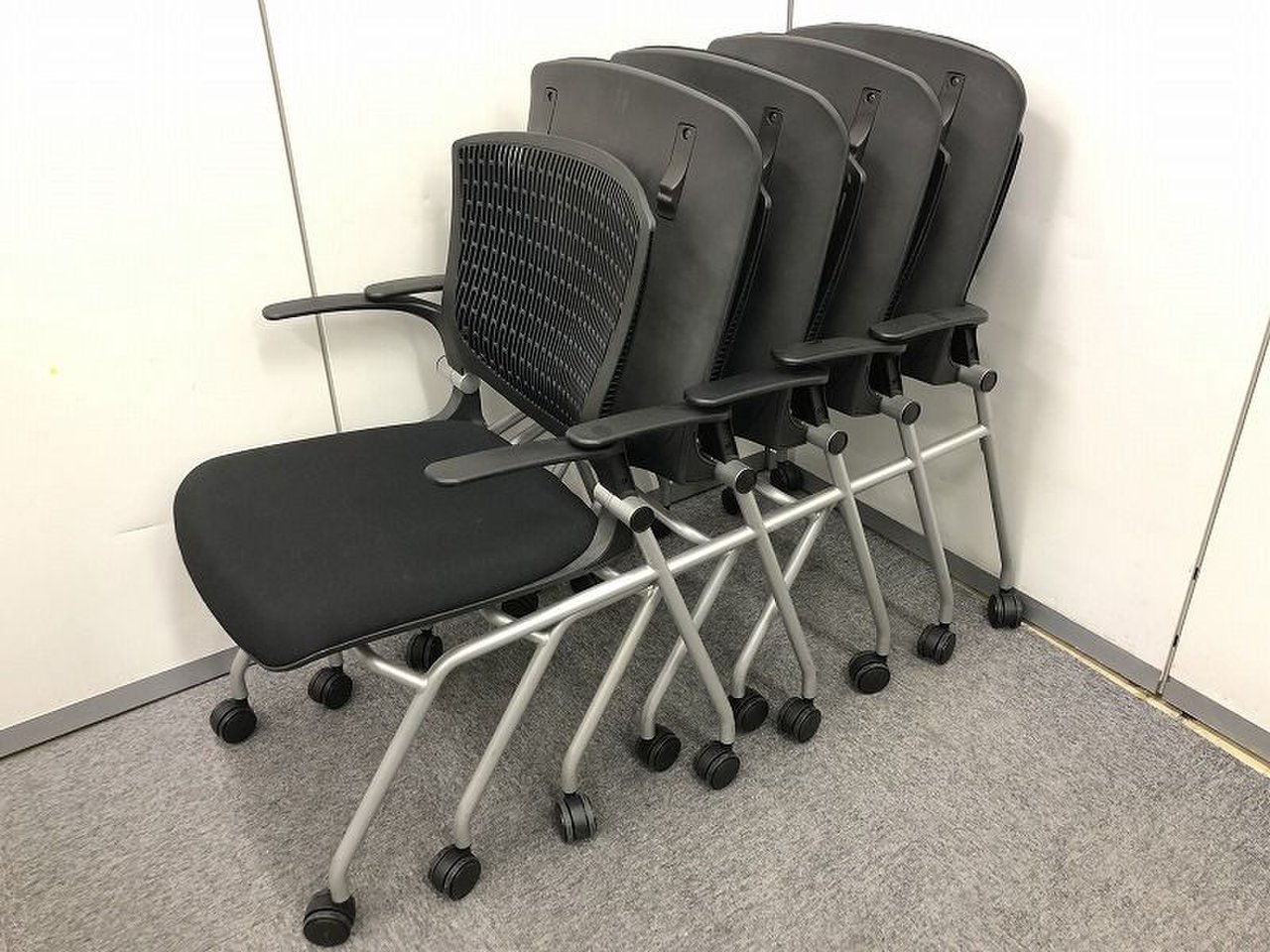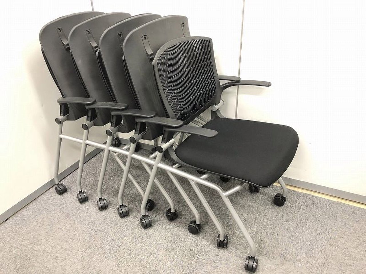 【会議を沢山したくなる】オカムラ/グラータ/ブラック キャスター 中古 オフィスバスターズ東大阪店 起業【ネスティング収納可能!】【K8】