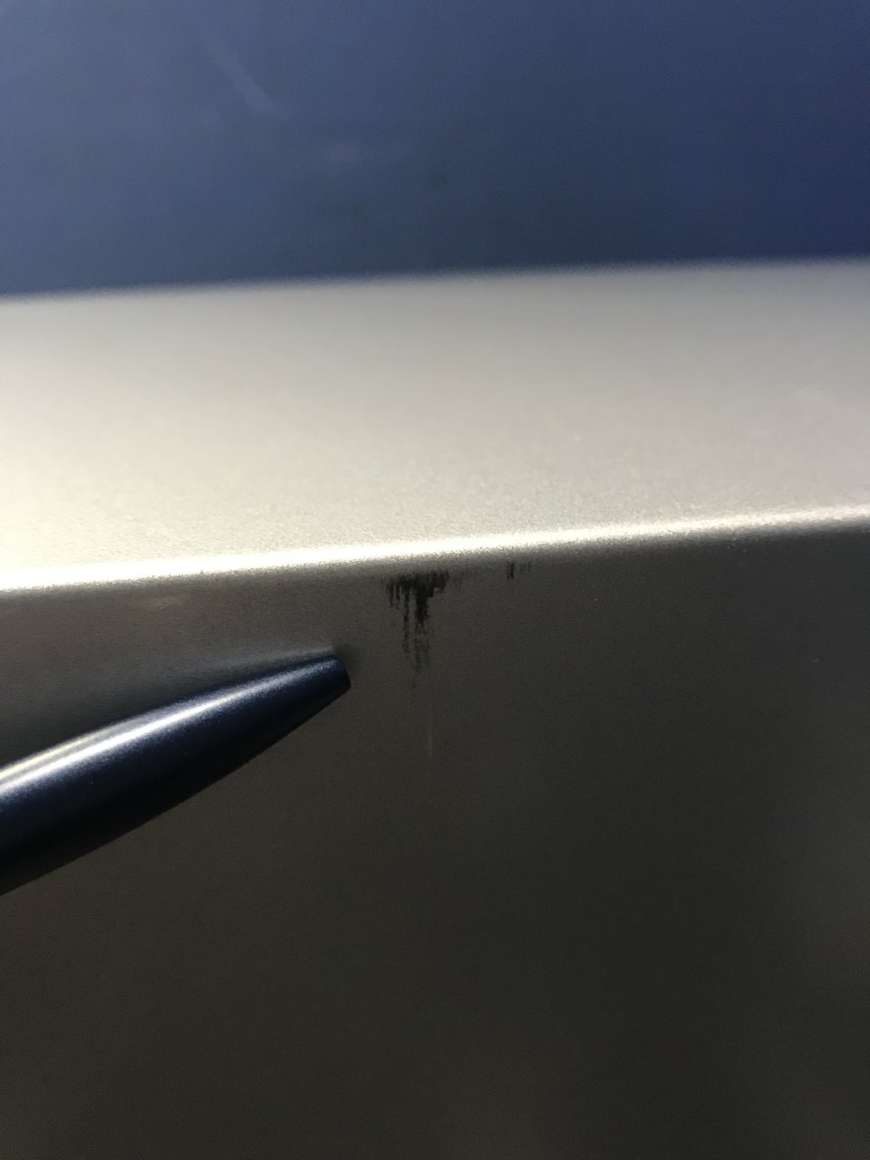 - あり黄ばみ・変色が広い範囲にうっすらある、または濃い黄ばみ・変色が一部ある。(例、天板、正面、背後、サイド部分にある。)