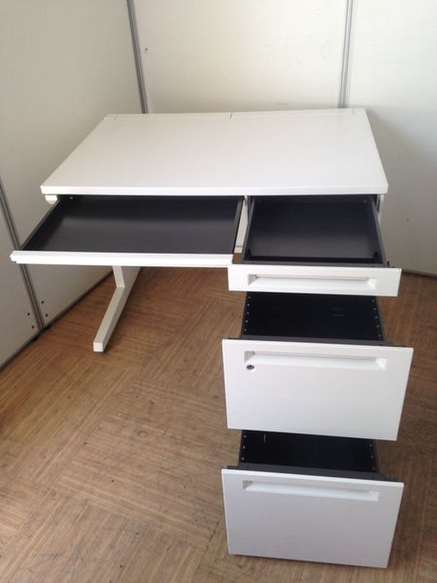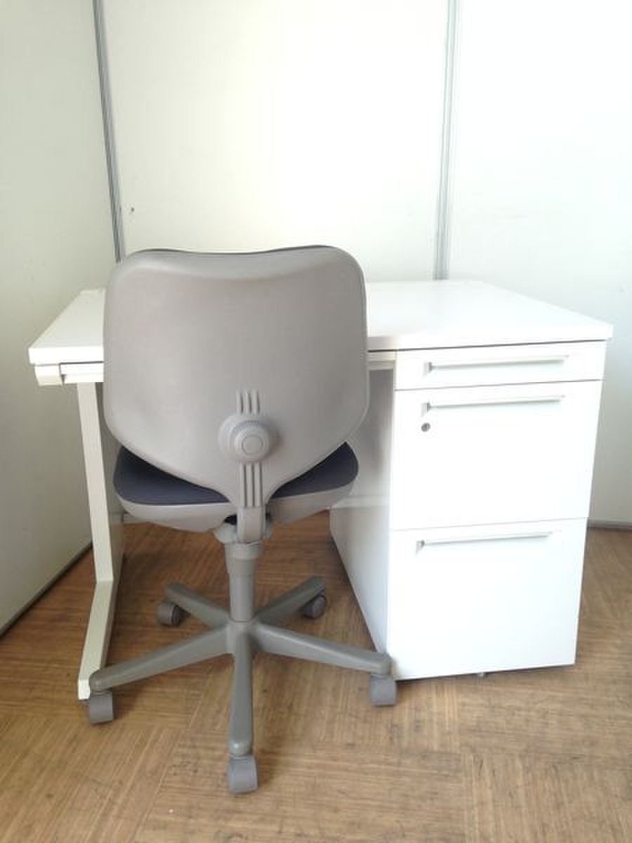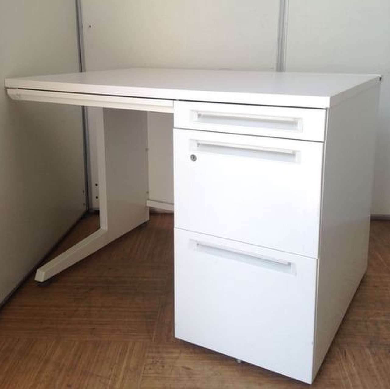 【T11】【商品入替のため、残り6台限り】オカムラ製 アドバンシシリーズ ホワイトカラー 4段収納で整理も完璧! コンパクトで清潔感のあるオフィス W1000片袖机!!